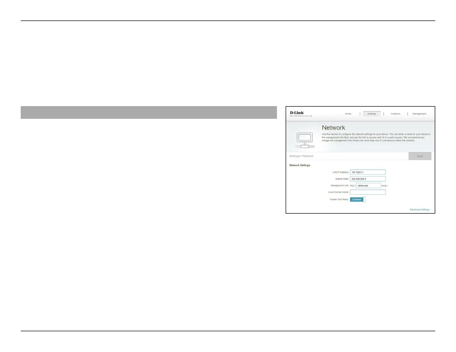 In the Settings menu on the bar at the top of the page, click Network to change the local network settings of the router and