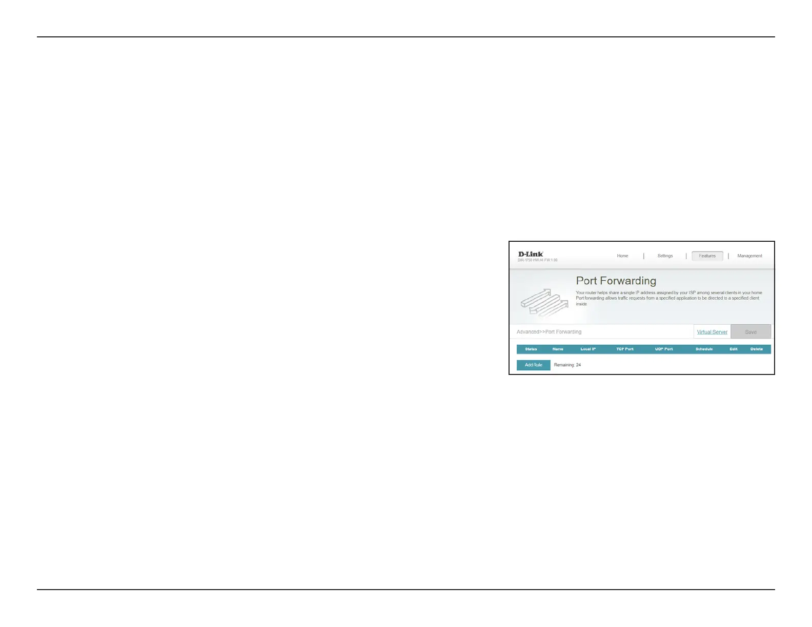 To congure the Virtual Server settings, click the Virtual Server link. Refer to Port Forwarding - Virtual Server on page