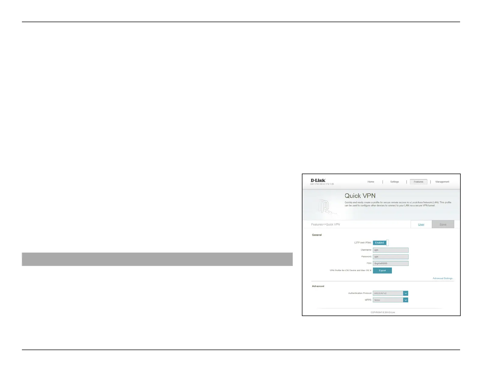 In the Features menu on the bar at the top of the page, click Quick VPN. This page will help you congure the Quick VPN