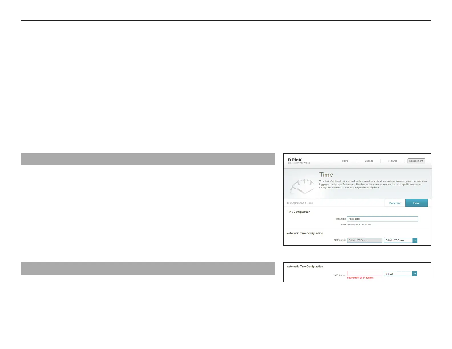 In the Management menu on the bar at the top of the page, click Time & Schedule. The Time page allows you to congure,