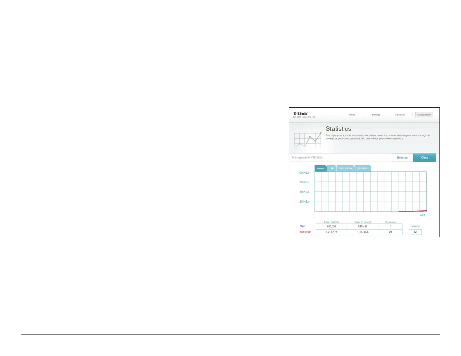 To view the Extender statistics, click the Extender link. Refer to Statistics - Extender on page 89
