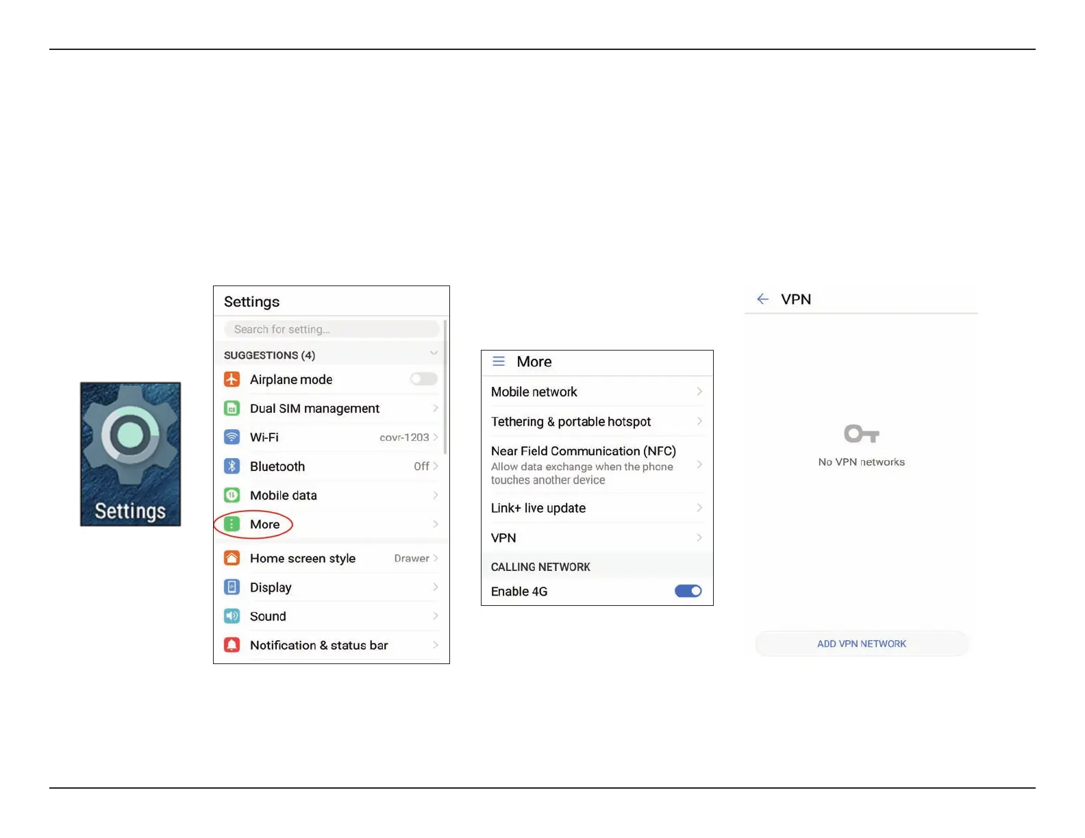 This section provides Quick VPN setup instructions for Android devices. Your device's screens may vary.