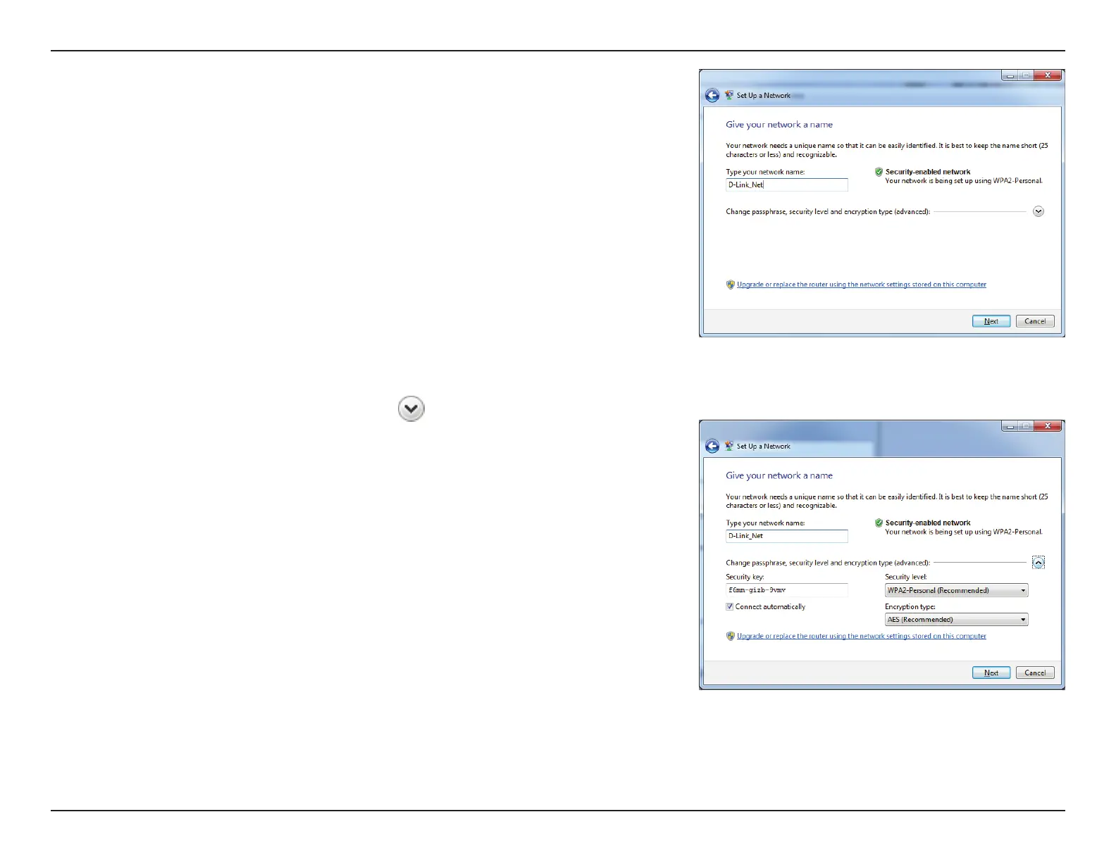 6. To congure advanced settings, click the