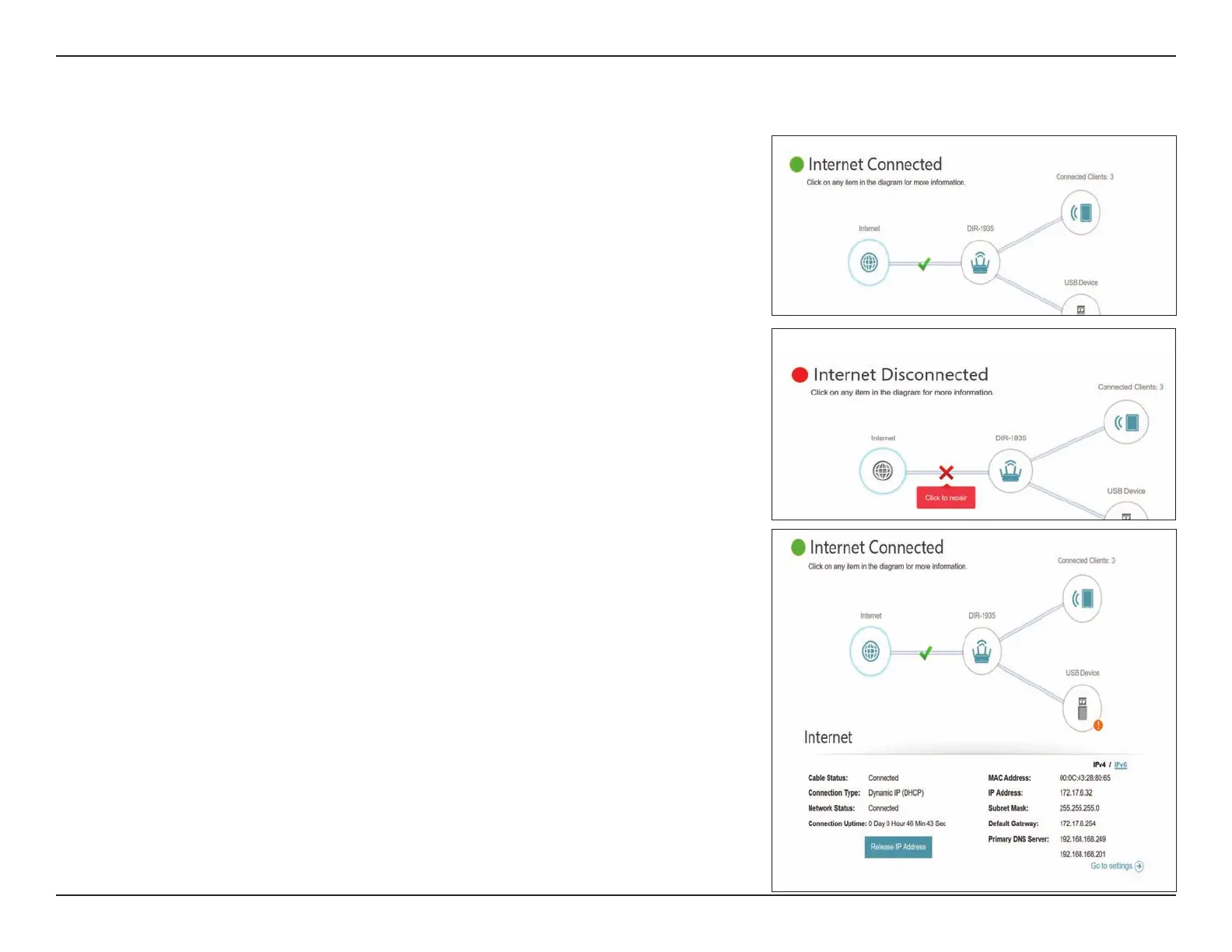 the Internet. If it is disconnected, click Click to repair to bring up the setup