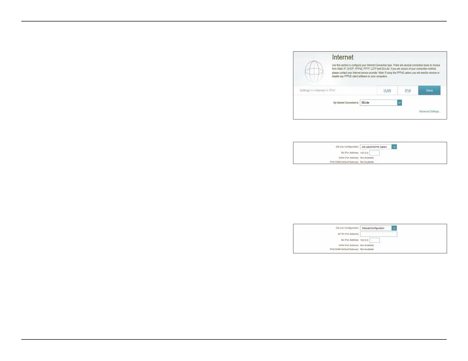 DS-Lite is an IPv6 connection type. After selecting DS-Lite, the following
