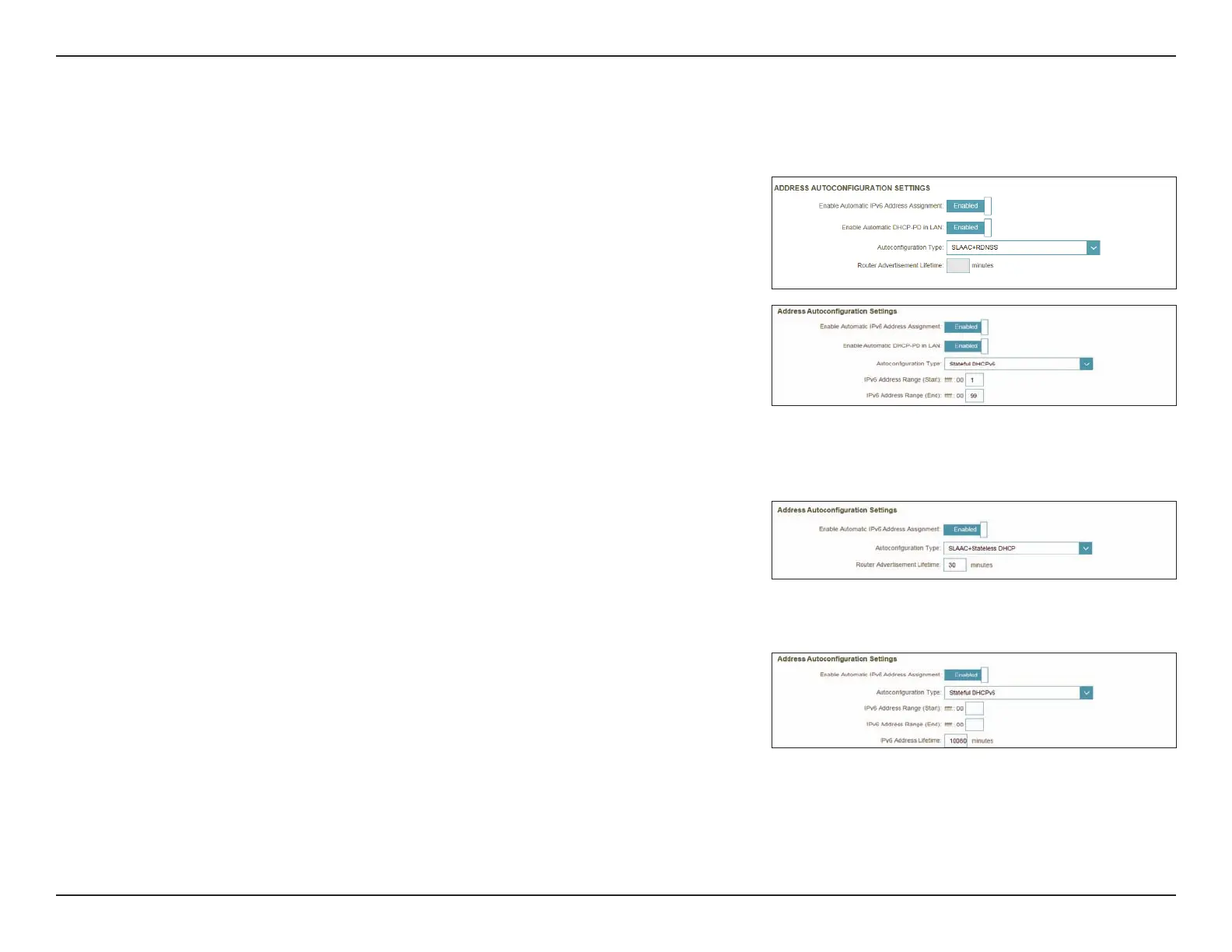 If you selected SLAAC+RDNSS or SLAAC+Stateless DHCP as the Autoconguration Type: