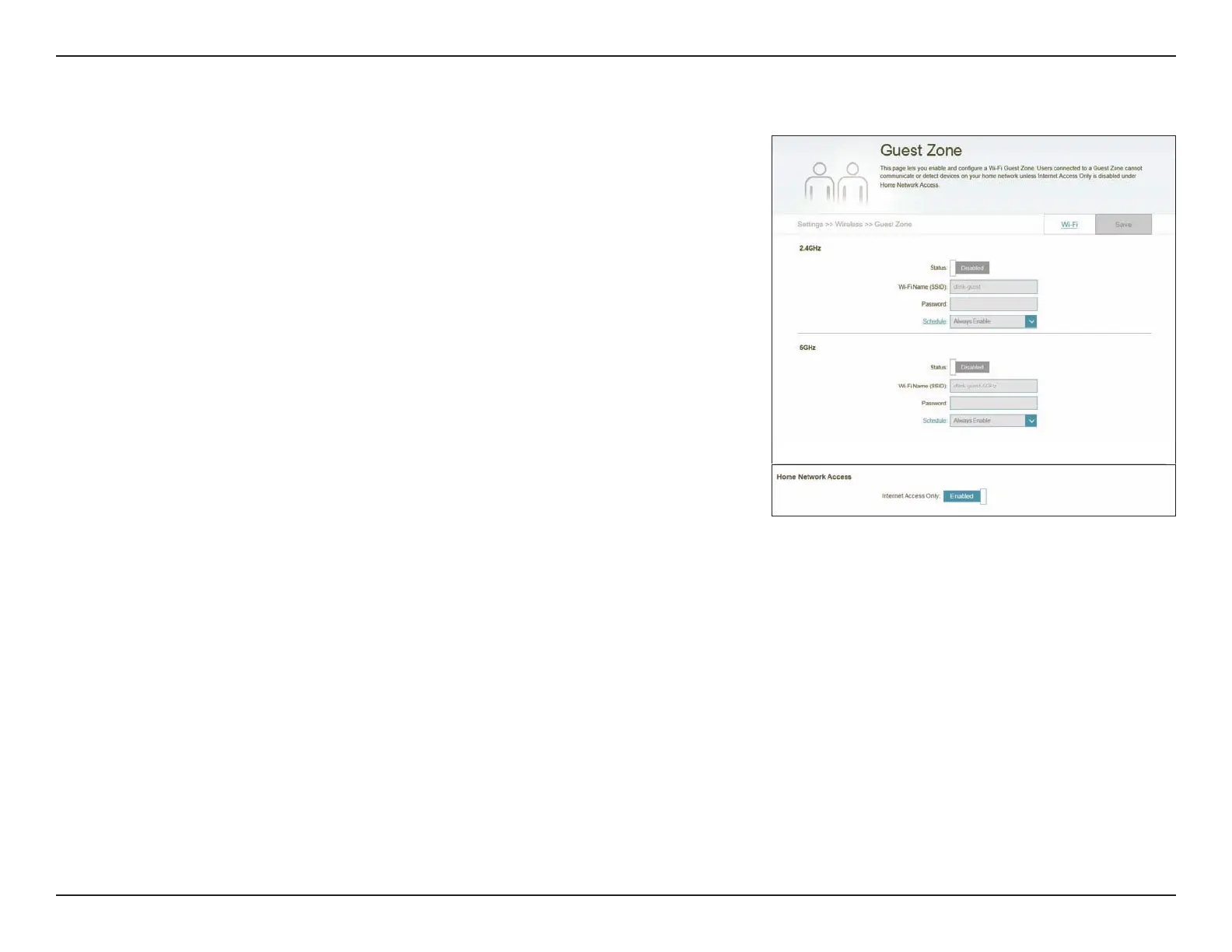 Note: If Smart Connect is enabled, Guest Zone is unavailable.