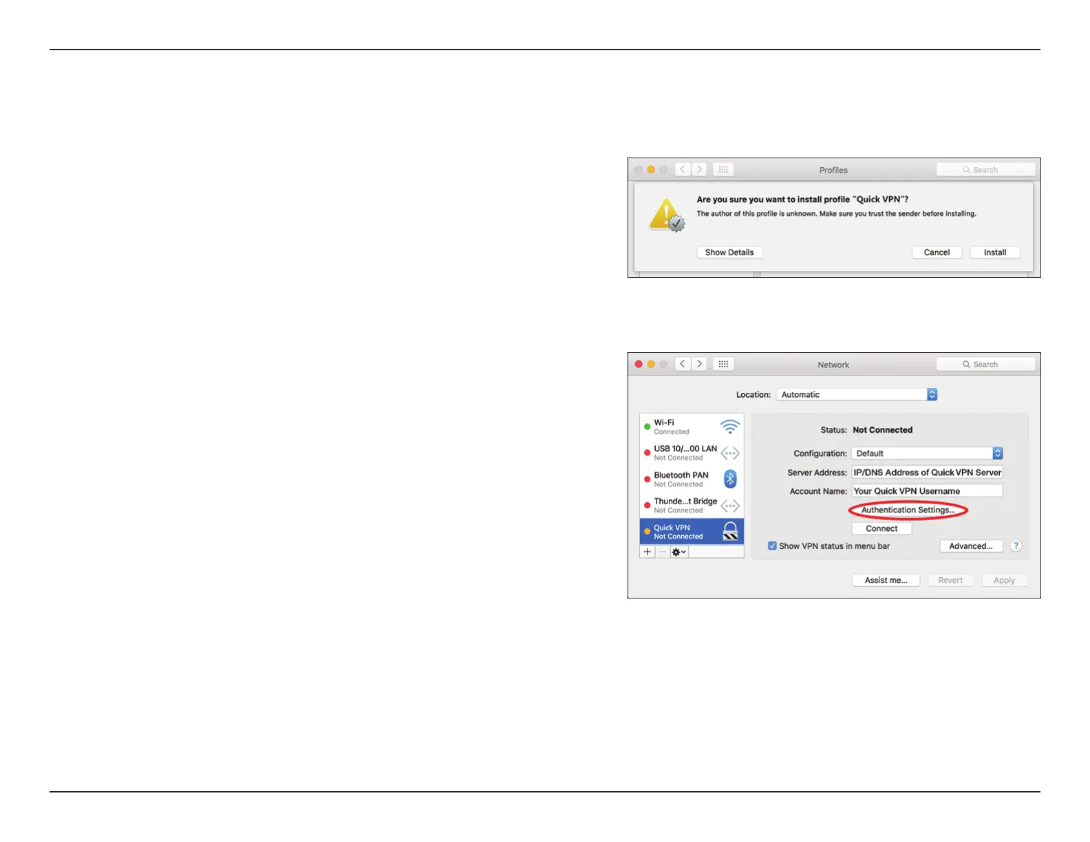 This section provides Quick VPN setup instructions for OS X using the Export