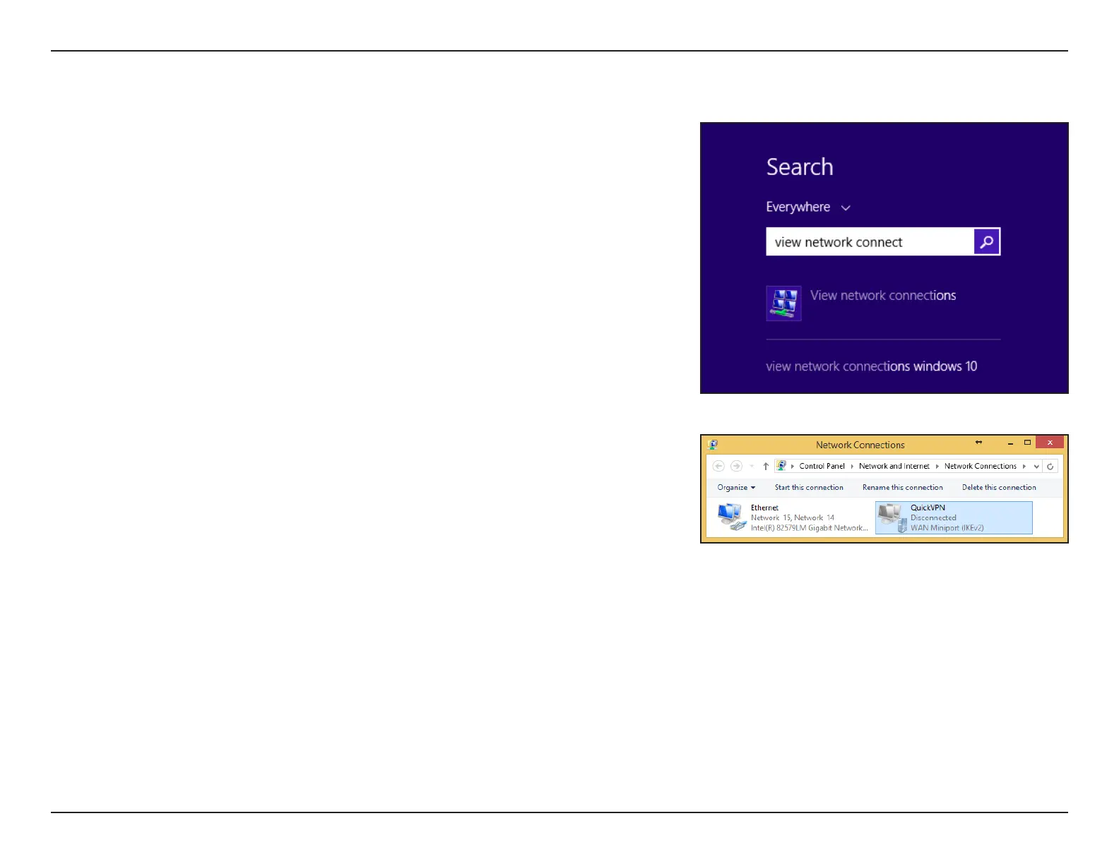 Click the Start button and type view network connections.