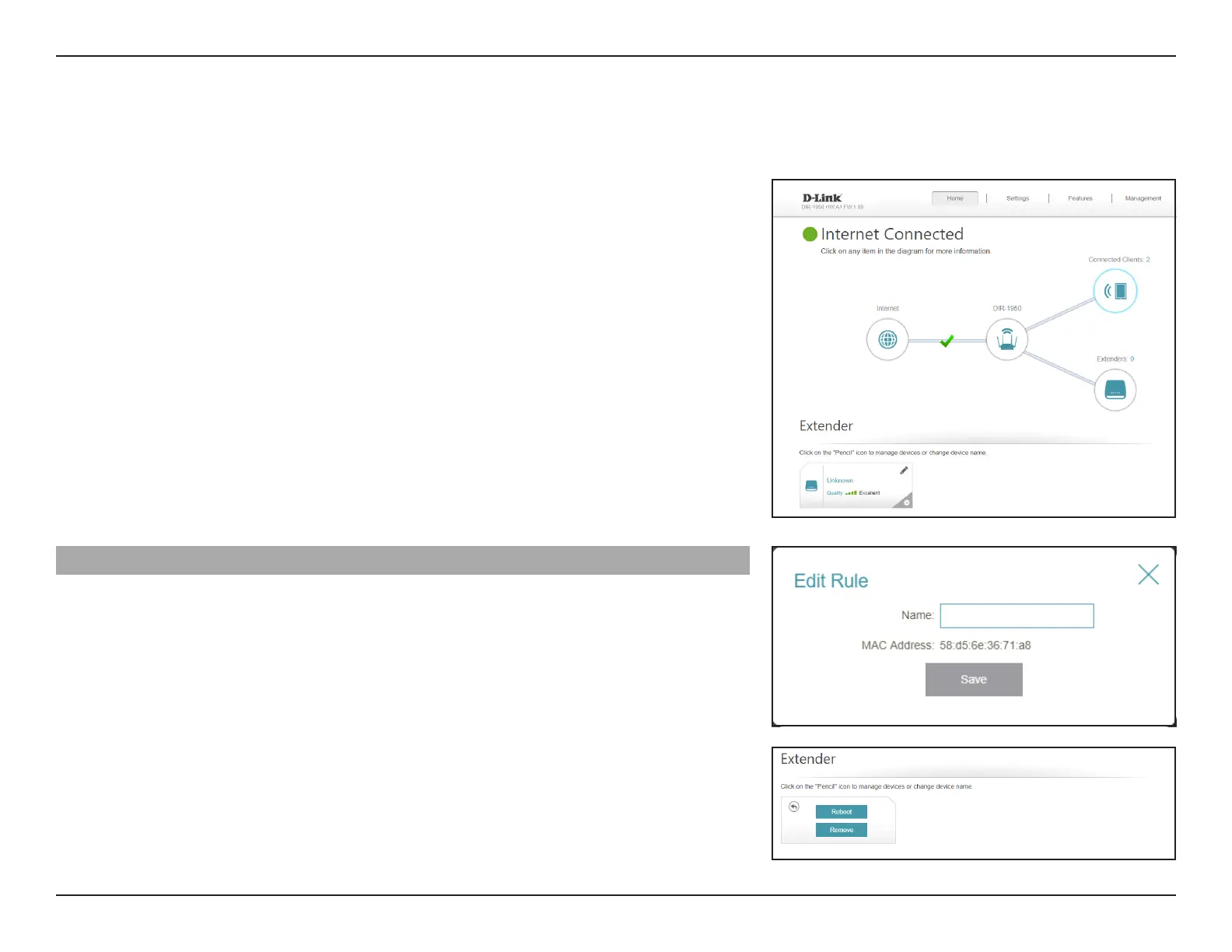 Click on the Extenders icon to view details about the connected extenders to the router and their wireless settings.