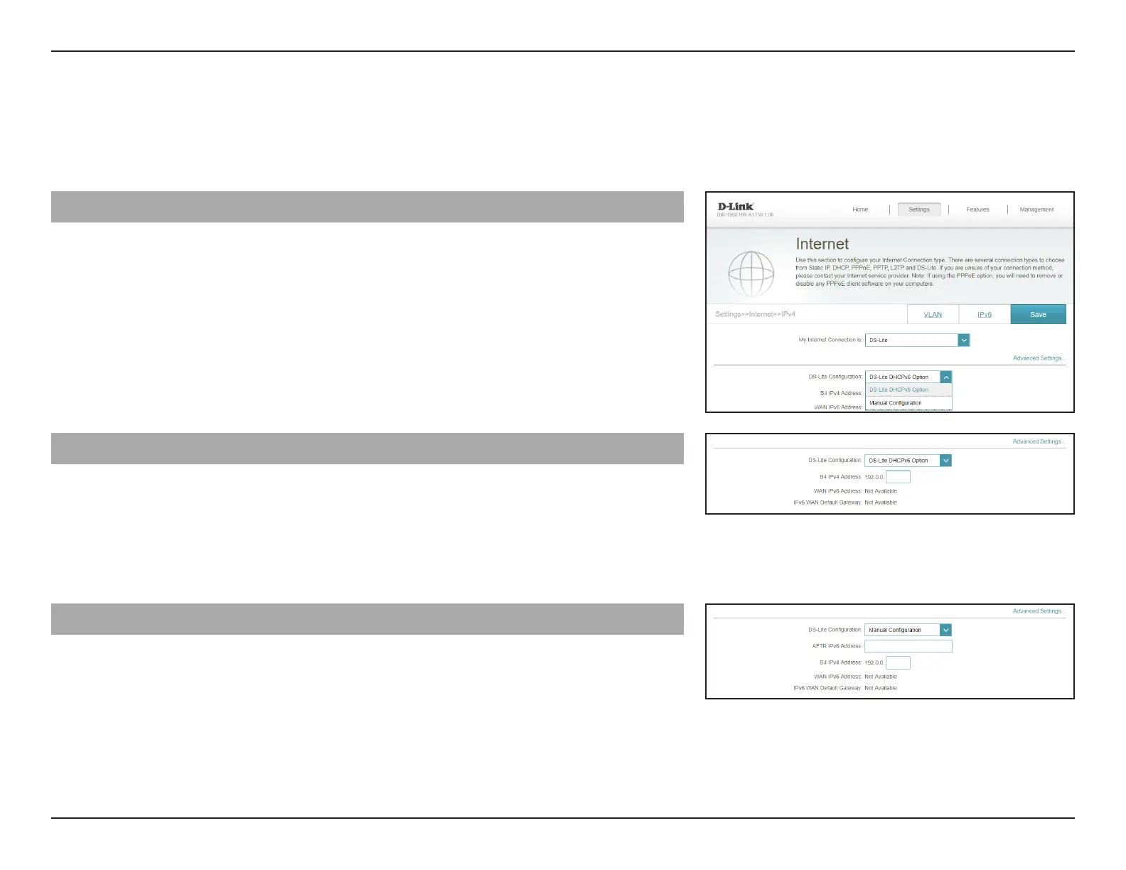 DS-Lite Conguration Select DS-Lite DHCPv6 Option to let the router allocate the
