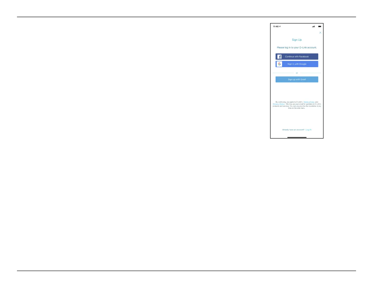 In this menu, you can sign up for a D-Link account using Facebook, Google