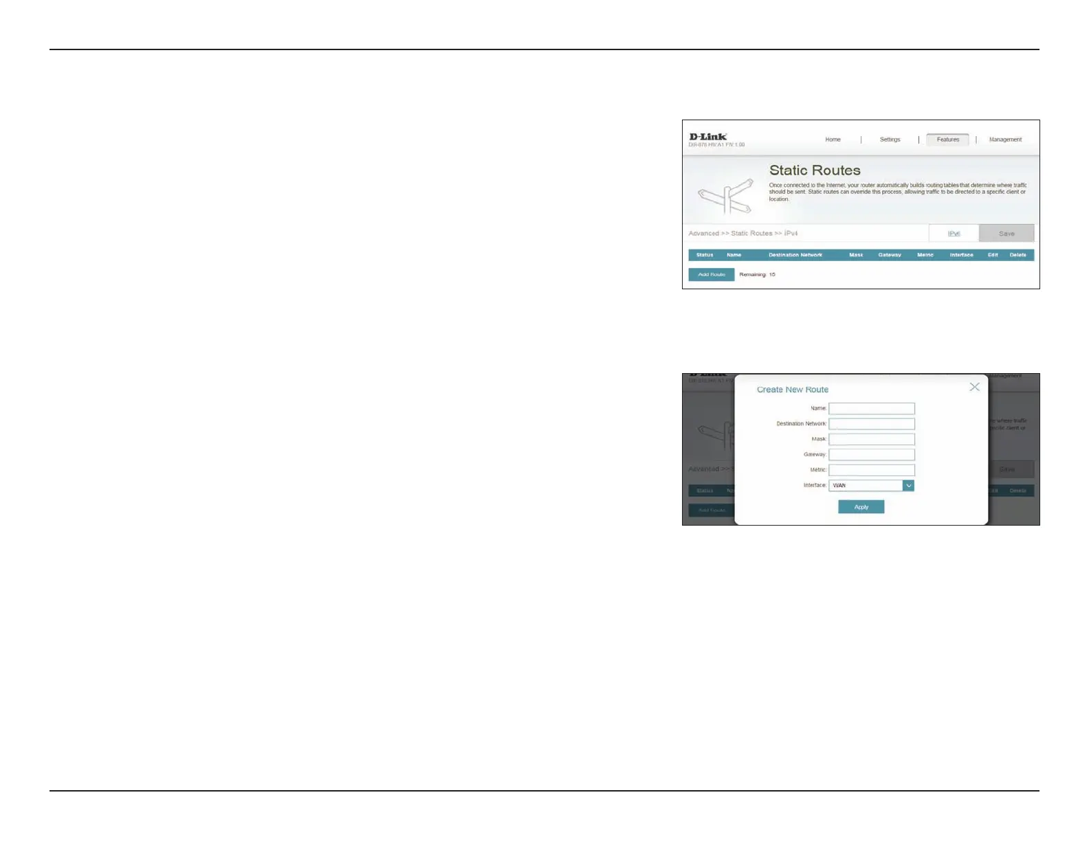 In the Features menu on the bar on the top of the page, click Static Routes.