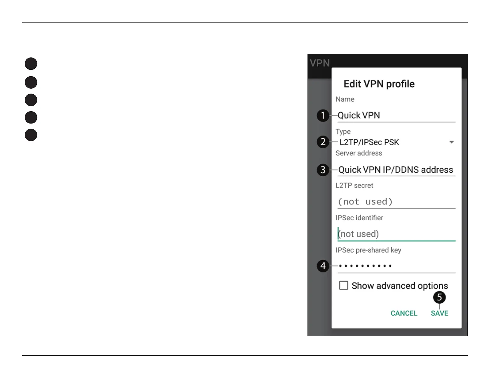 Your Android device is now congured to connect to your Quick VPN