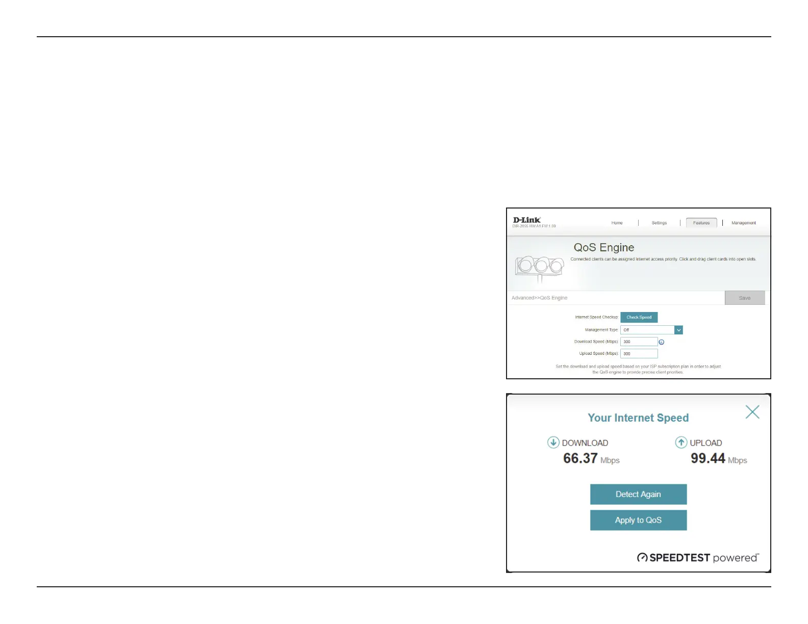 In the Features menu on the bar at the top of the page, click QoS Engine to congure connected clients Internet access