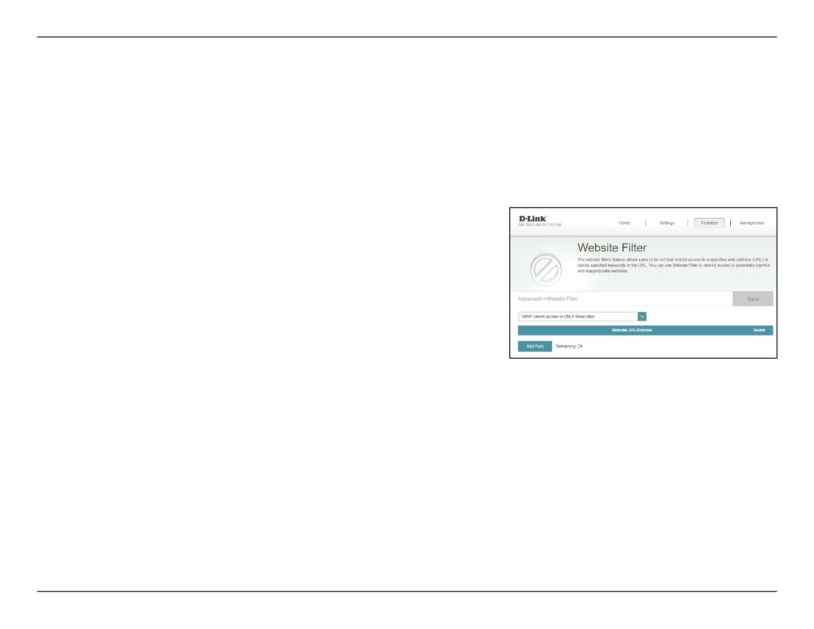 In the Features menu on the bar at the top of the page, click Website Filter. The website lters feature allows rules to be set