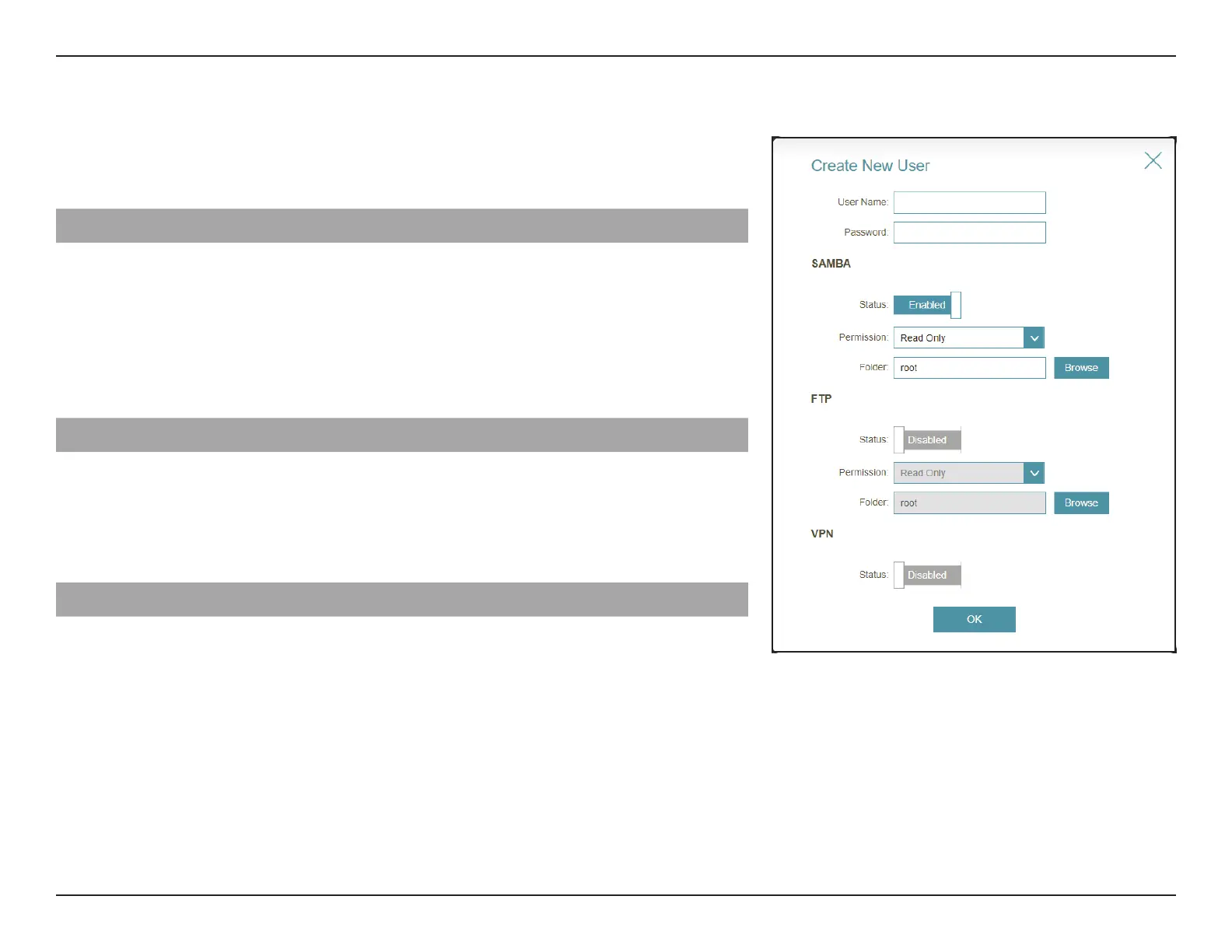 Permission If SAMBA is enabled, choose to assign either Read Only or