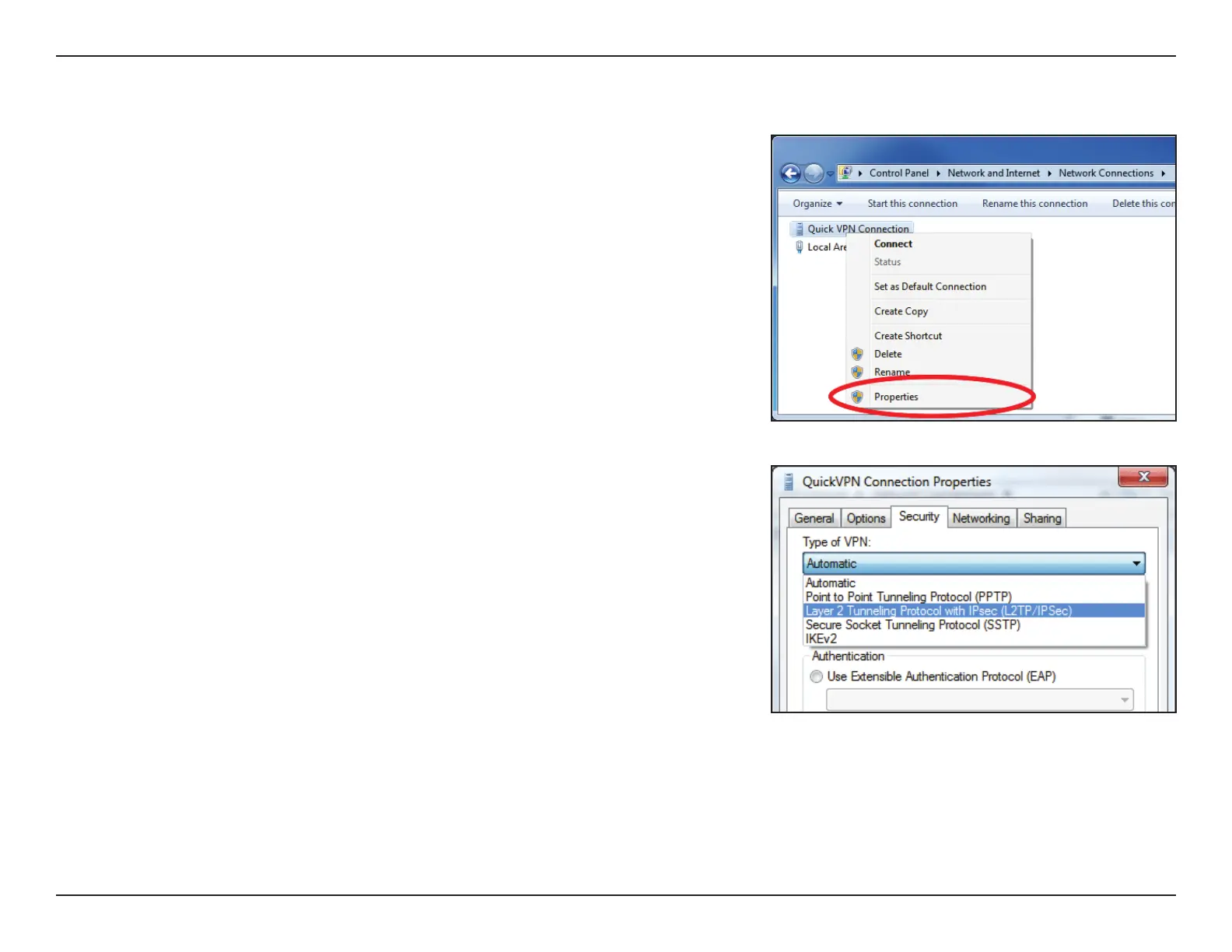 Select the Security tab. For the Type of VPN, select Layer2Tunneling with