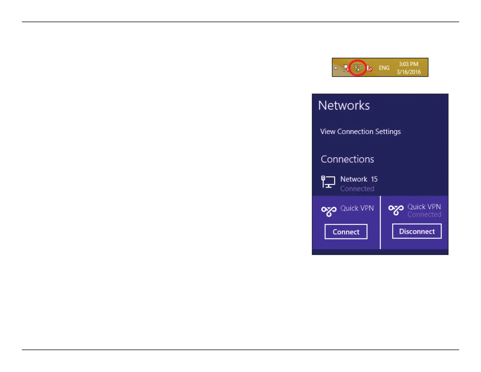 To connect to or disconnect from your Quick VPN server, click on the