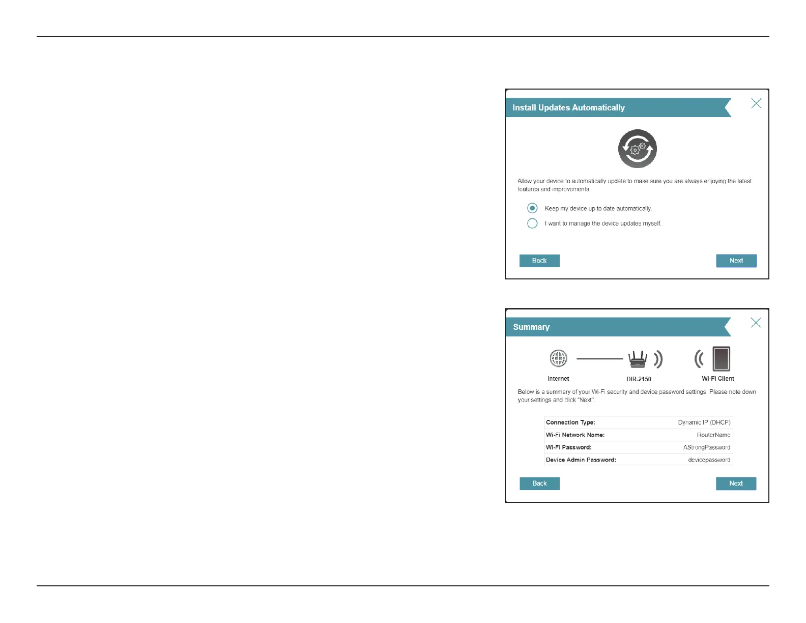 Click Next to nalize the settings or Back to make changes.