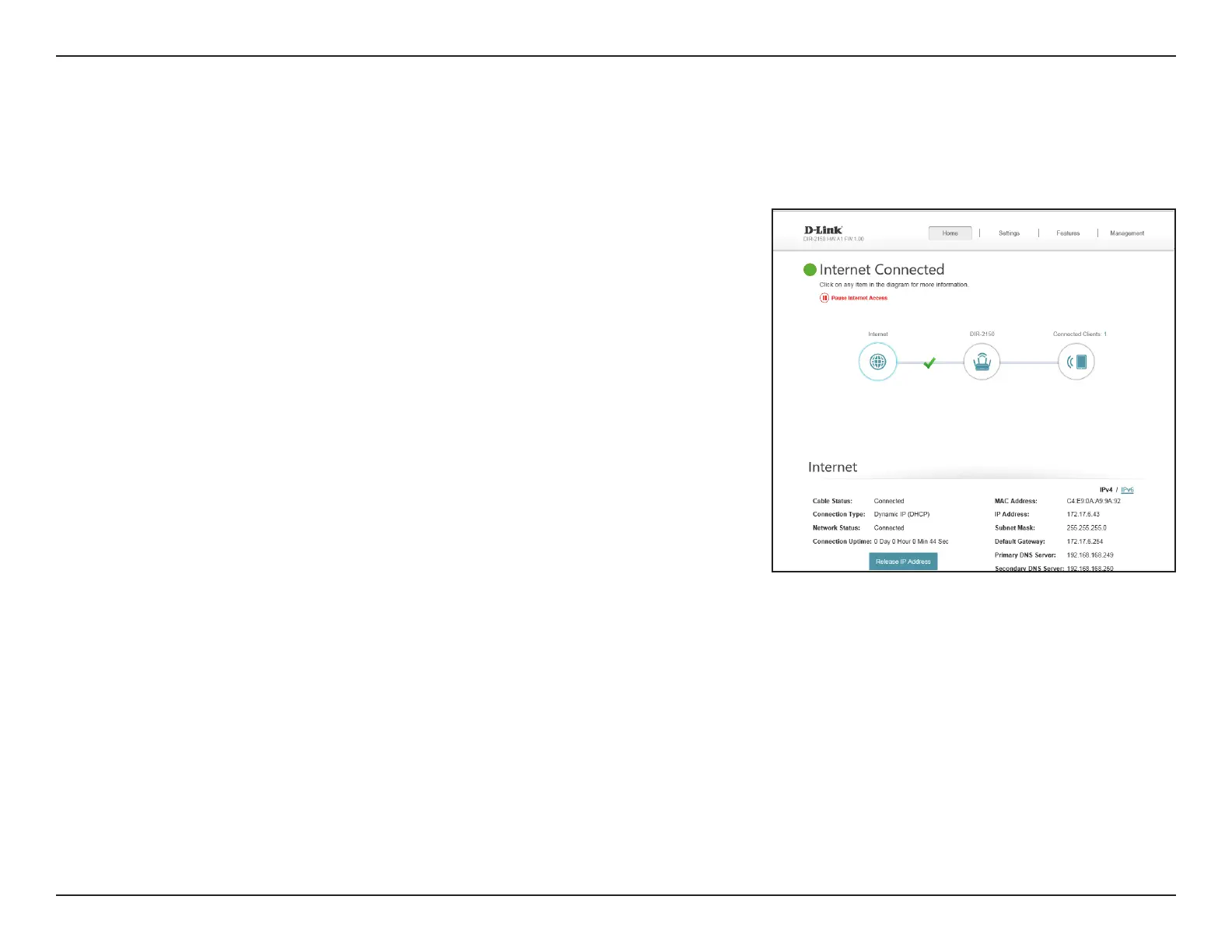 To recongure the Internet settings, refer to Internet(WAN) - IPv4 on page