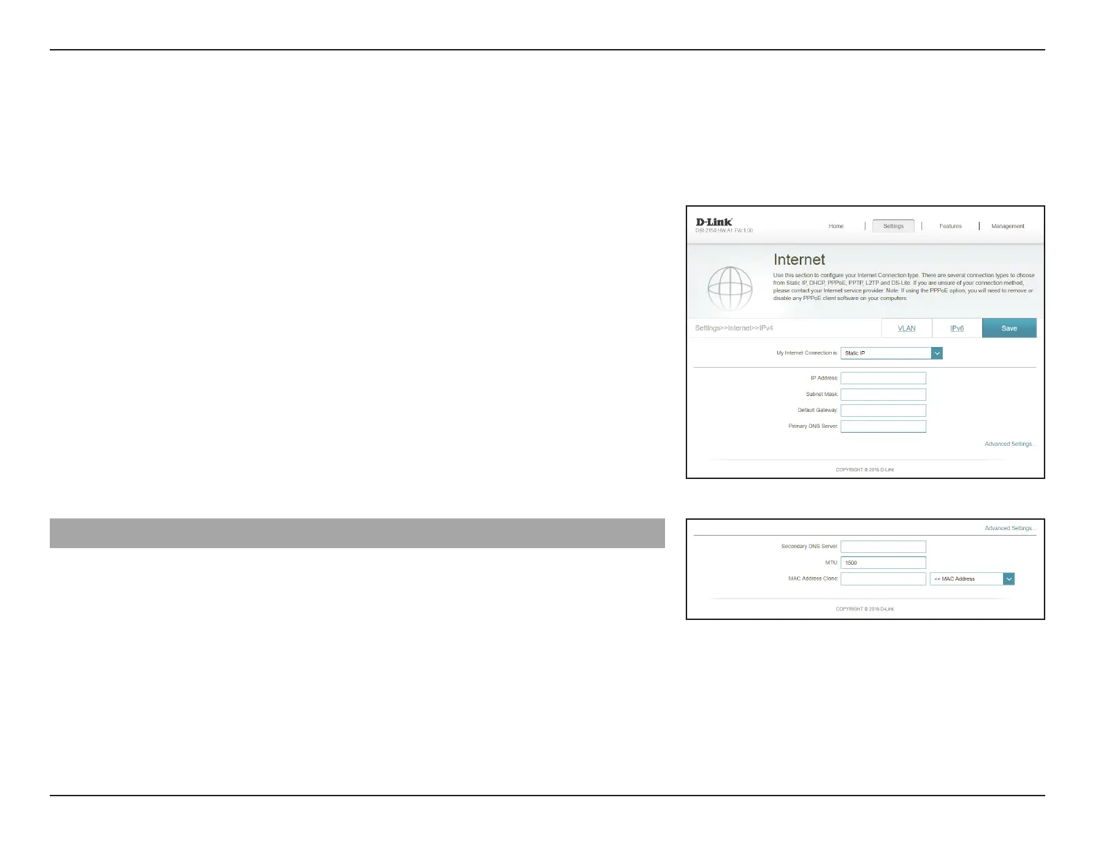 Select Static IP if your IP information is provided by your Internet Service Provider (ISP). Click Save at any time to save the