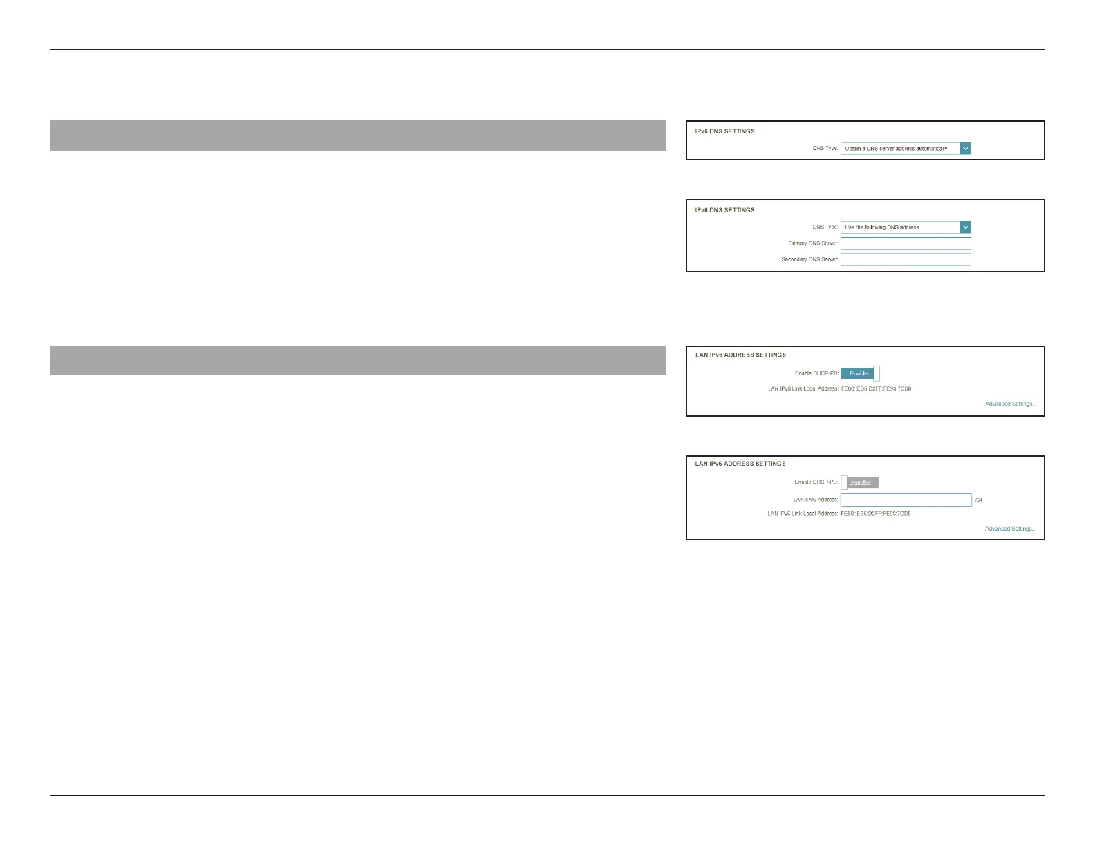 LAN IPv6 Address Settings