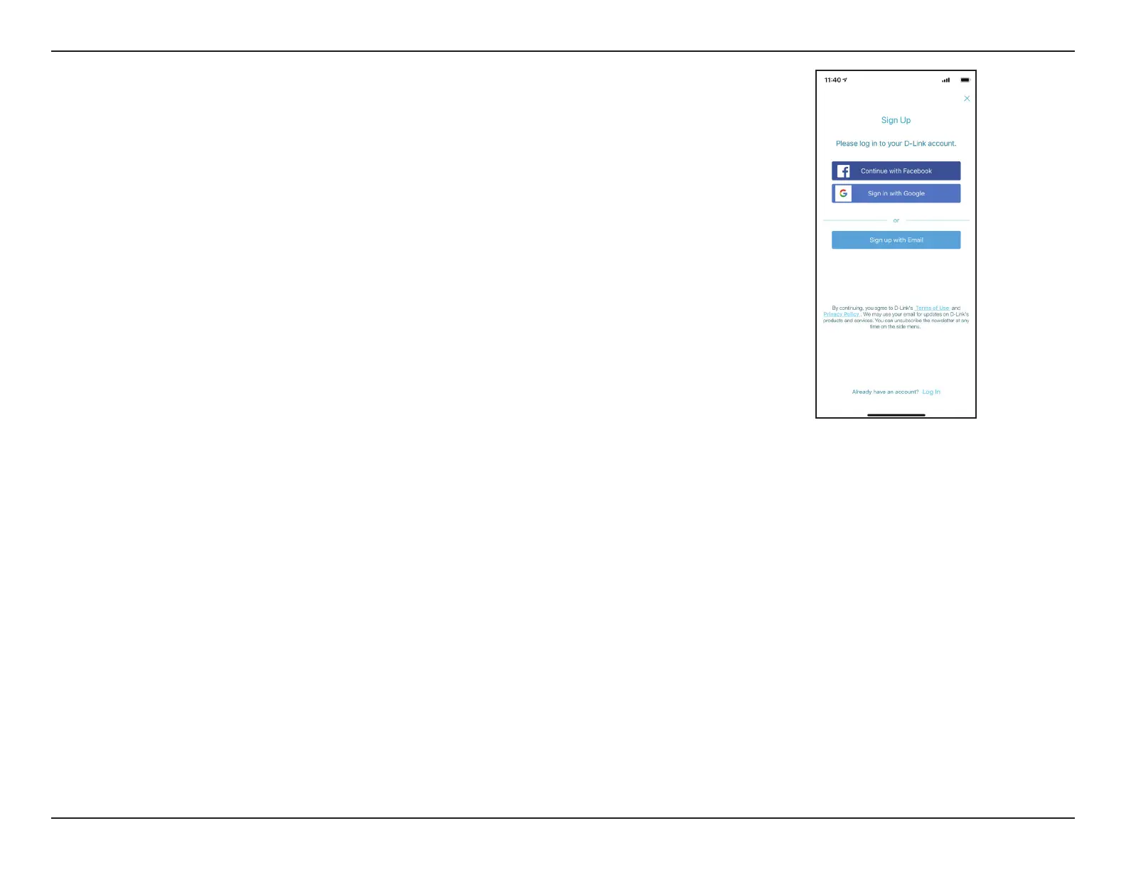 In this menu, you can sign up for a D-Link account using Facebook, Google