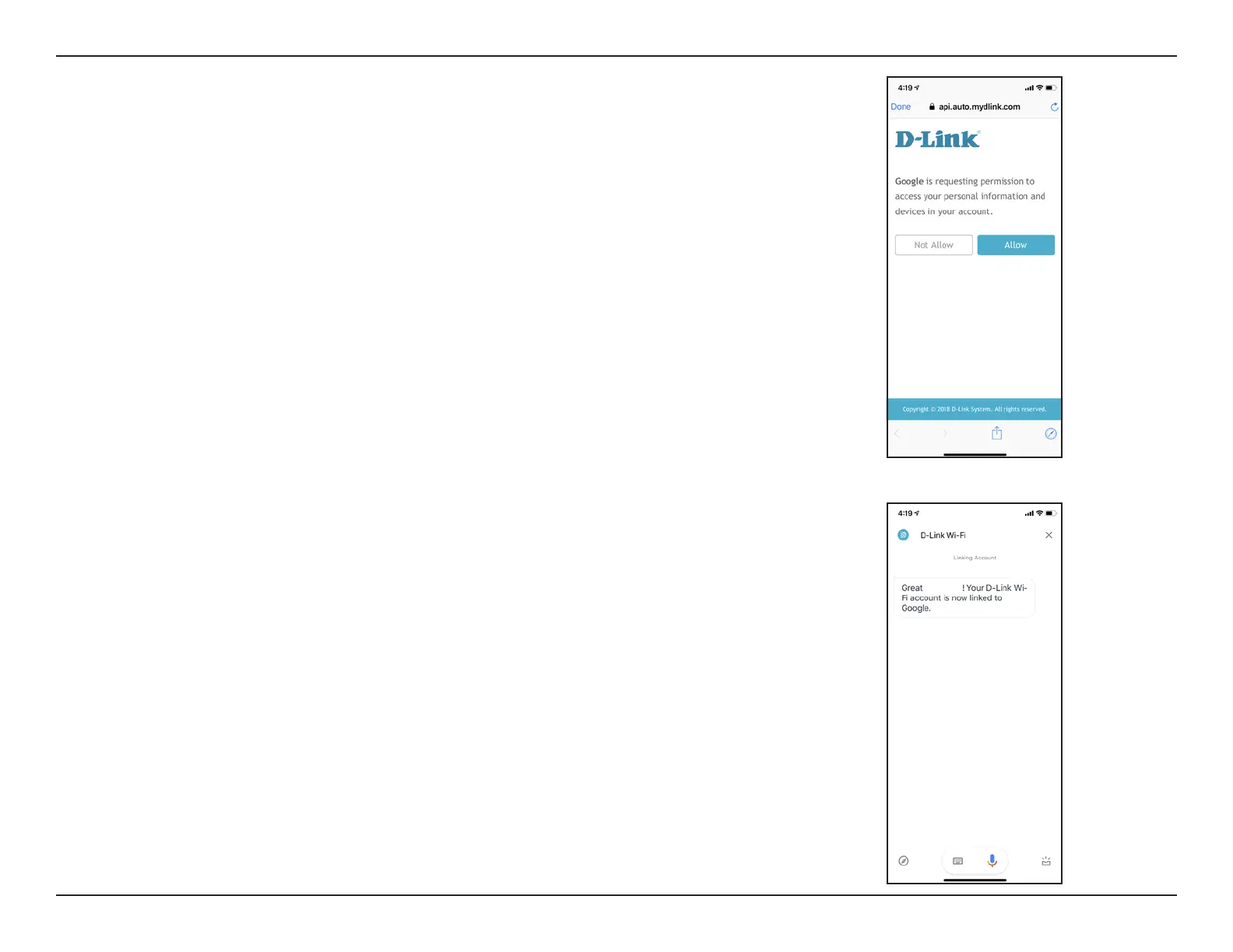 Congratulations! D-Link Wi-Fi has been successfully linked to your Google