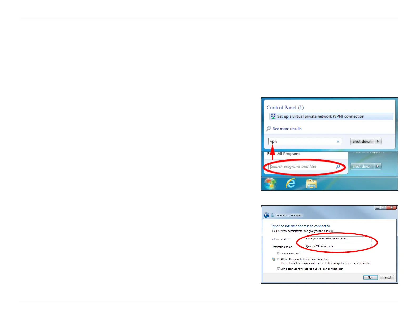 This section provides Quick VPN setup instructions for Windows 7. Refer to Quick VPN on page 87 for your router setup