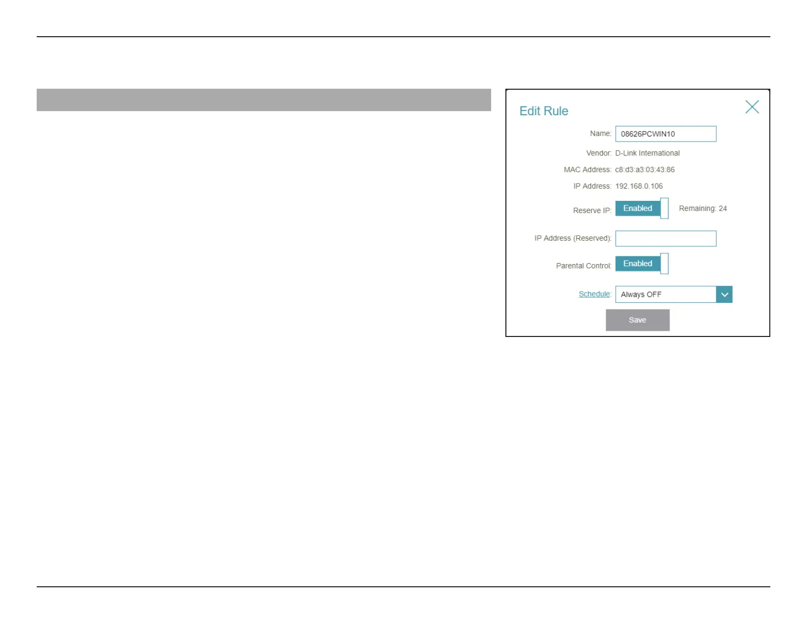 Reserve IP Enable to reserve an IP address for the client.