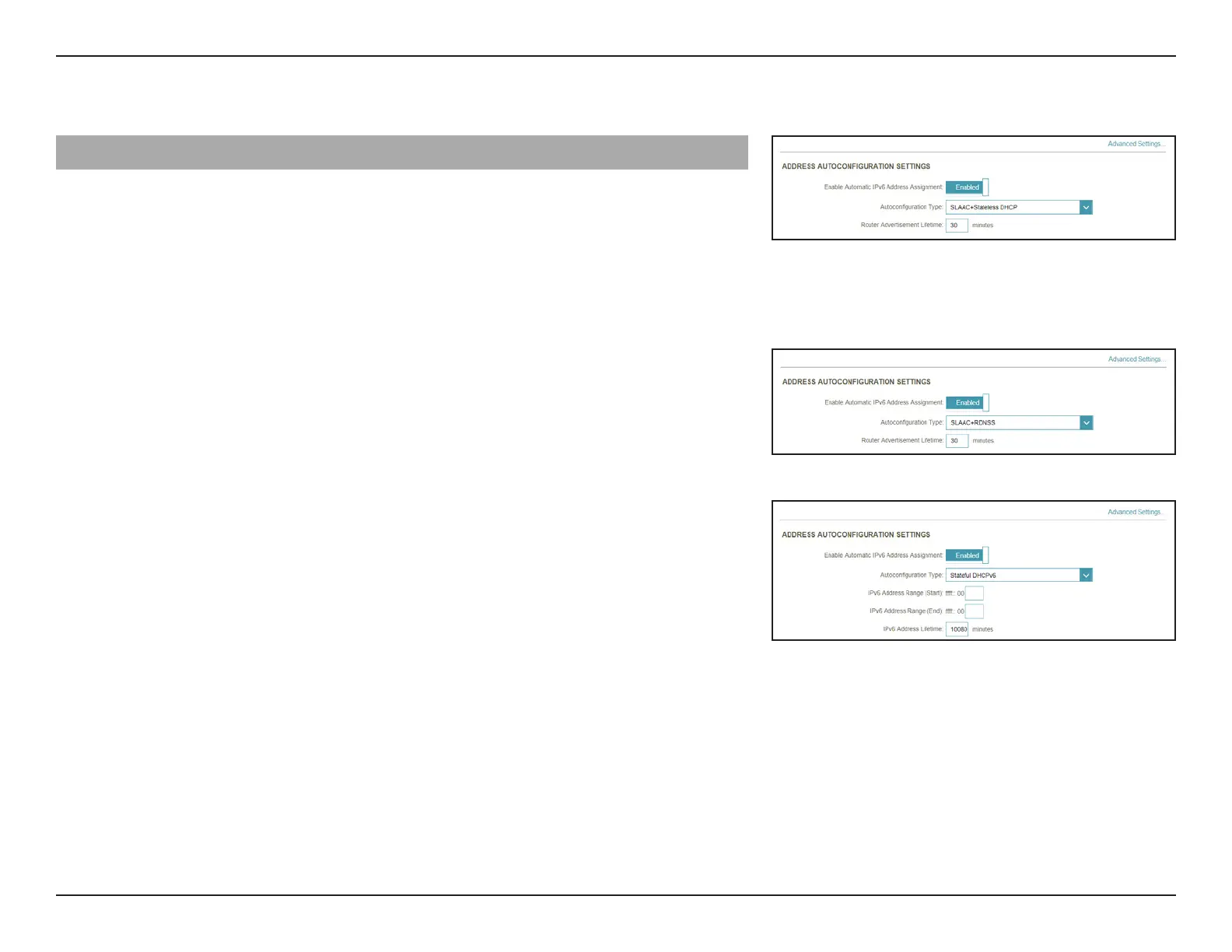 IPv6 Address Lifetime Enter the IPv6 address lifetime (in minutes).