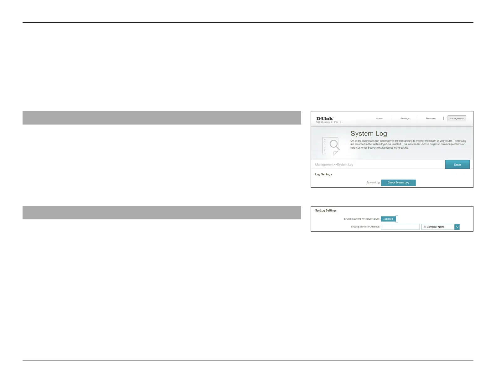 In the Management menu on the bar at the top of the page, click System Log. The router keeps a running log of events. This