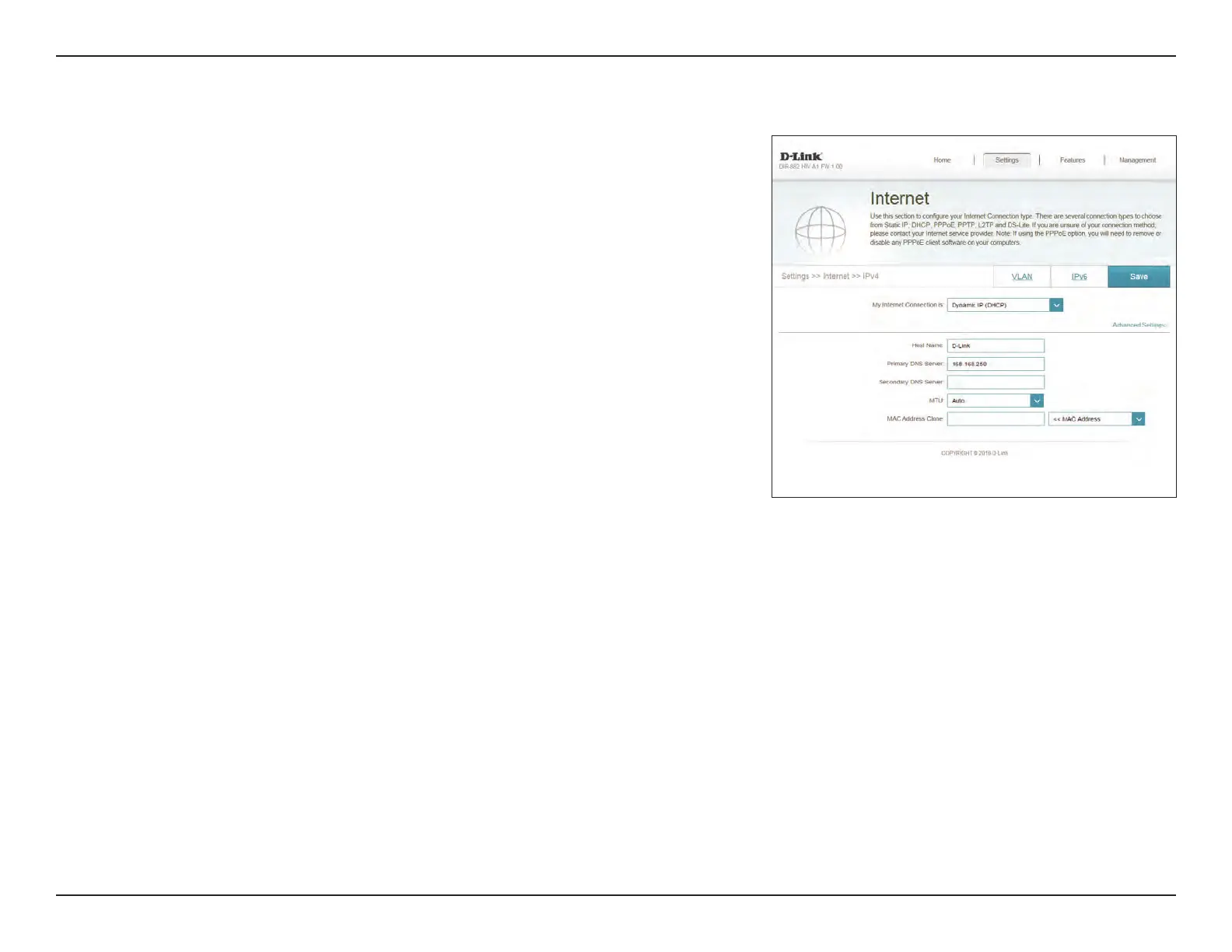The default MAC address is set to the Internet port’s physical interface