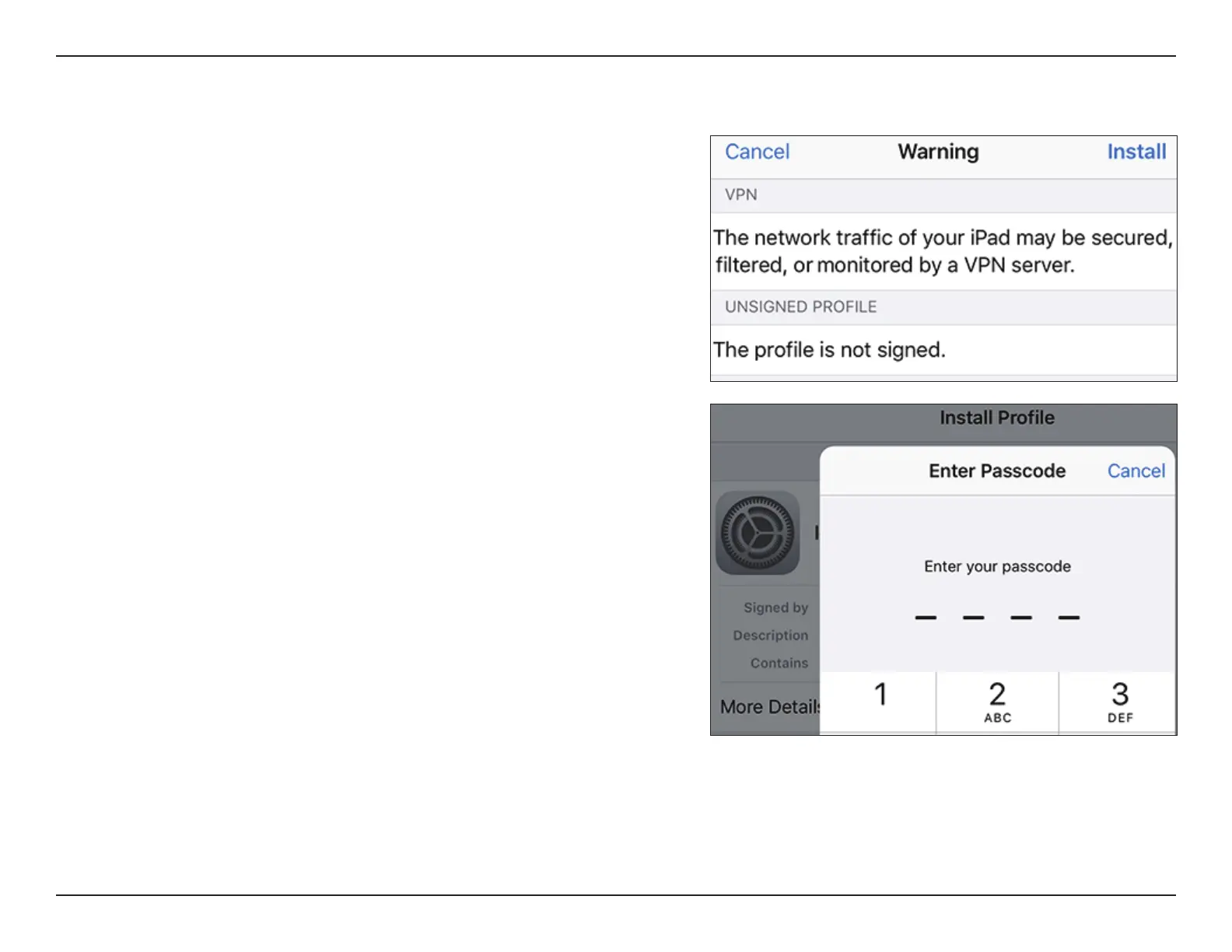 The Install Prole dialog will appear, tap Install in the upper right hand corner of