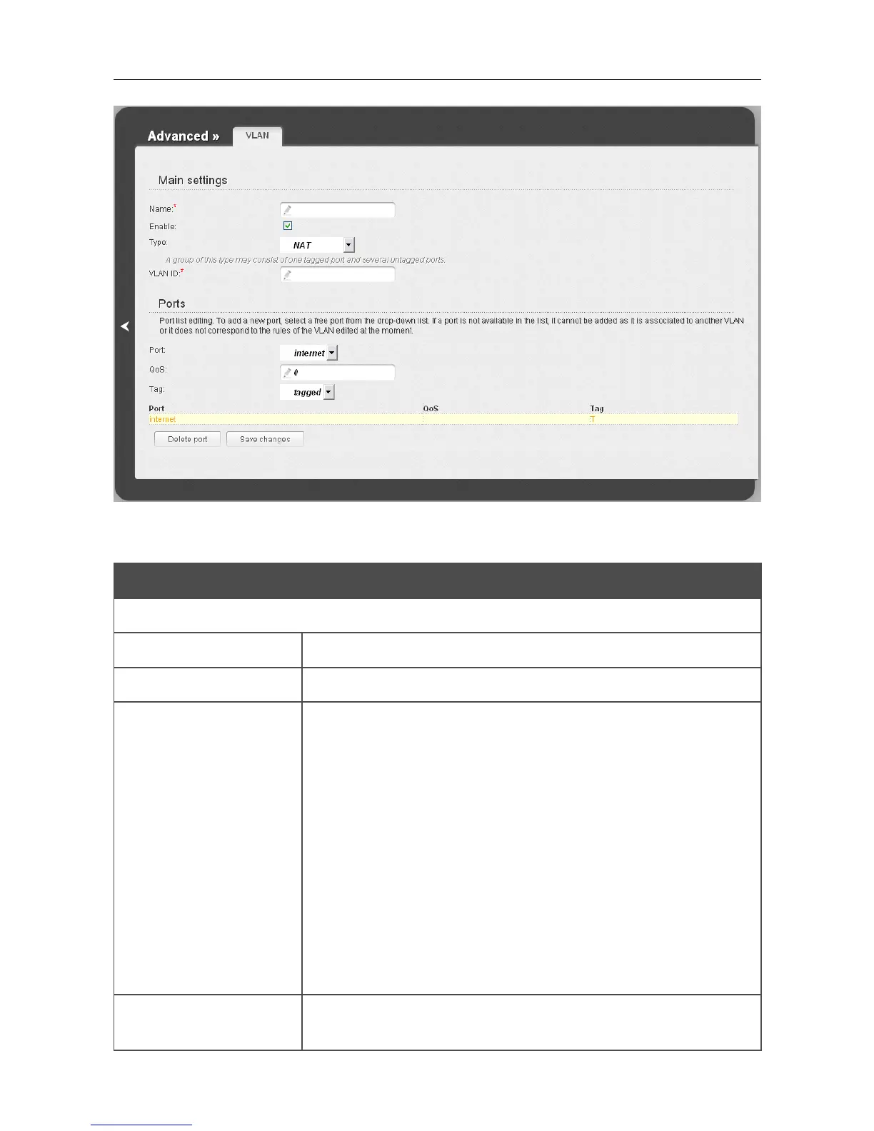 Figure 101. The page for adding a group of ports for VLAN.