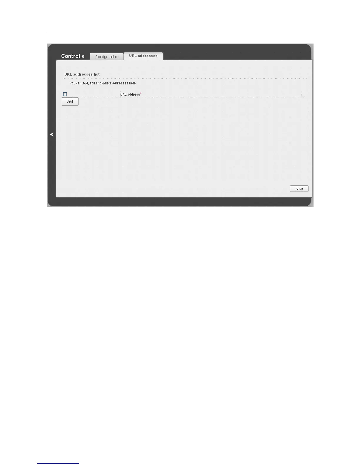 Figure 118. The Control / URL filter page. The URL addresses tab.