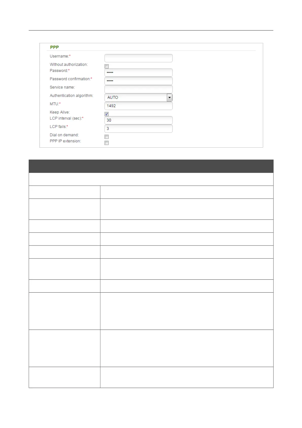 Figure 68. The page for creating a new IPv6 PPPoE connection. The PPP section.
