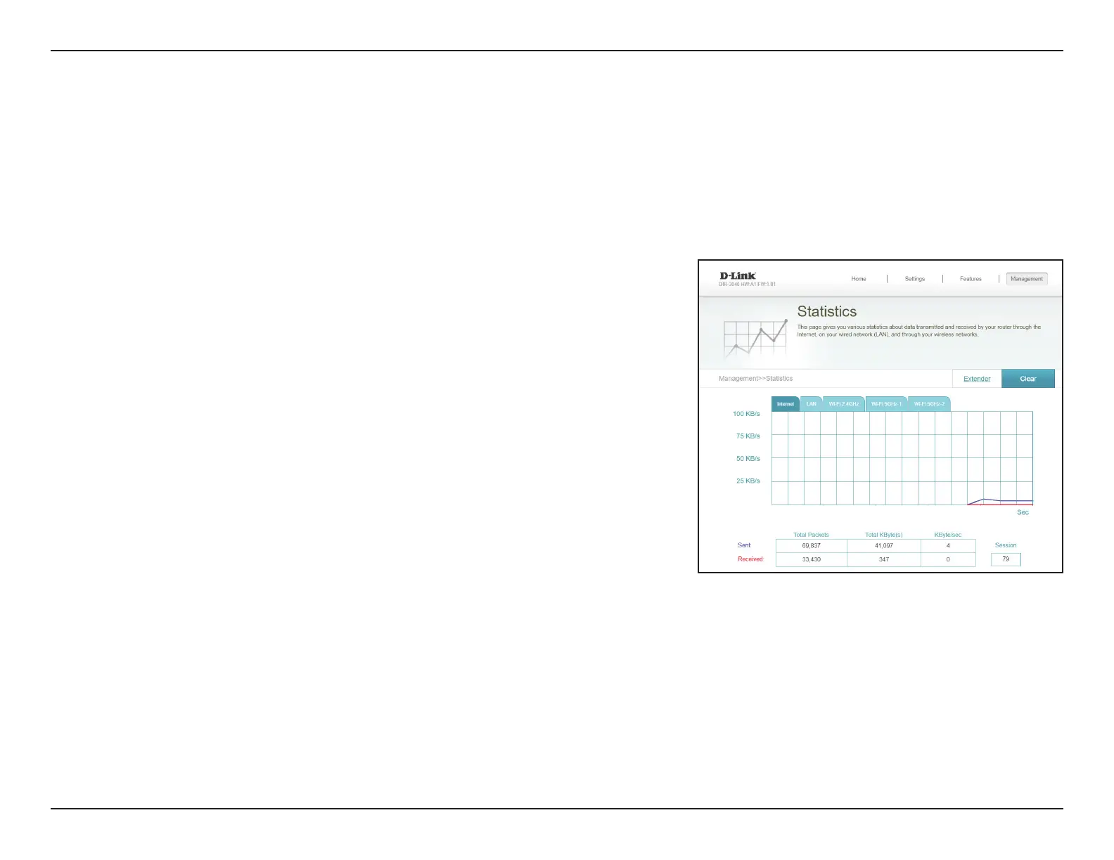 To view the Extender statistics, click the Extender link. Refer to Statistics - Extender on page 98