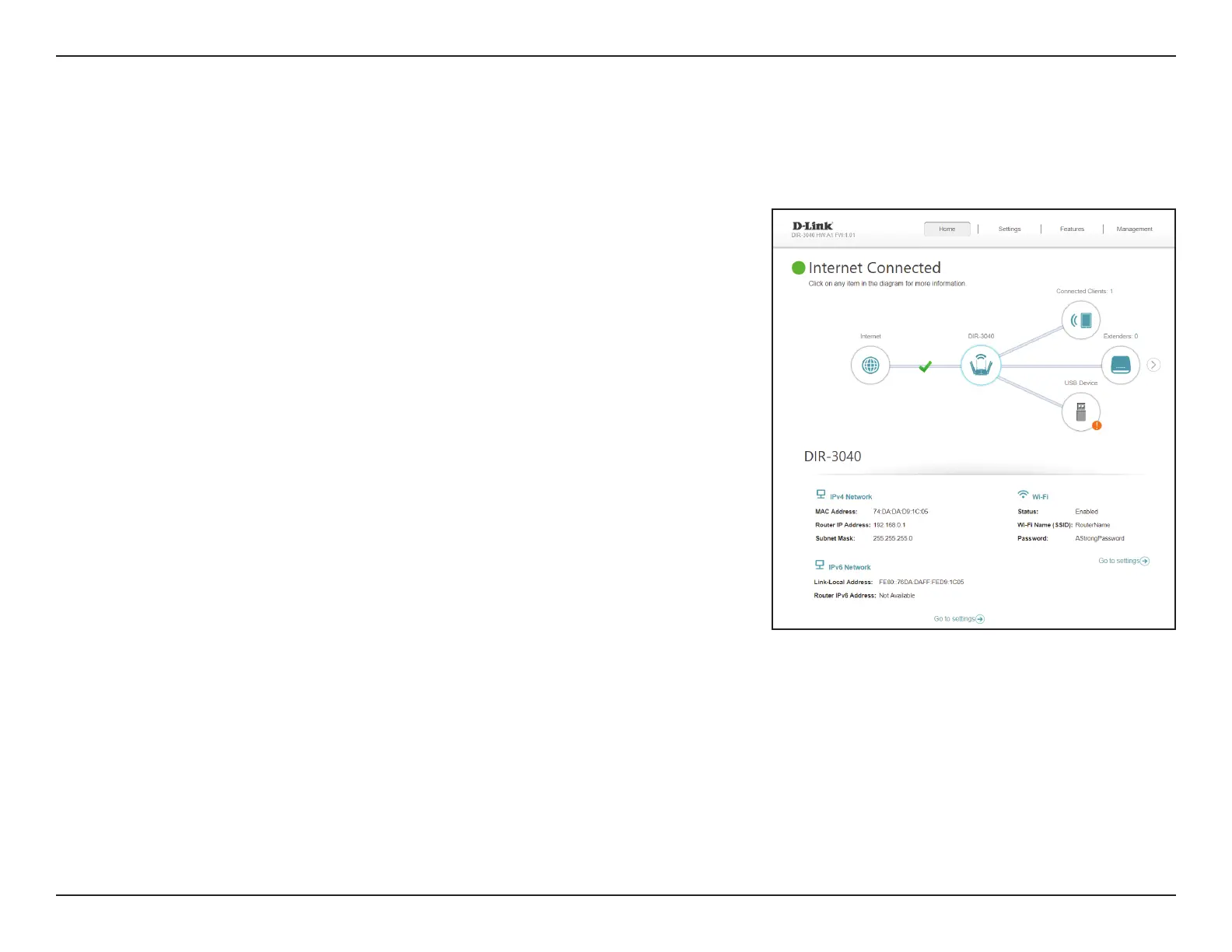 Click on the DIR-3040 icon to view details about the router and its wireless settings.