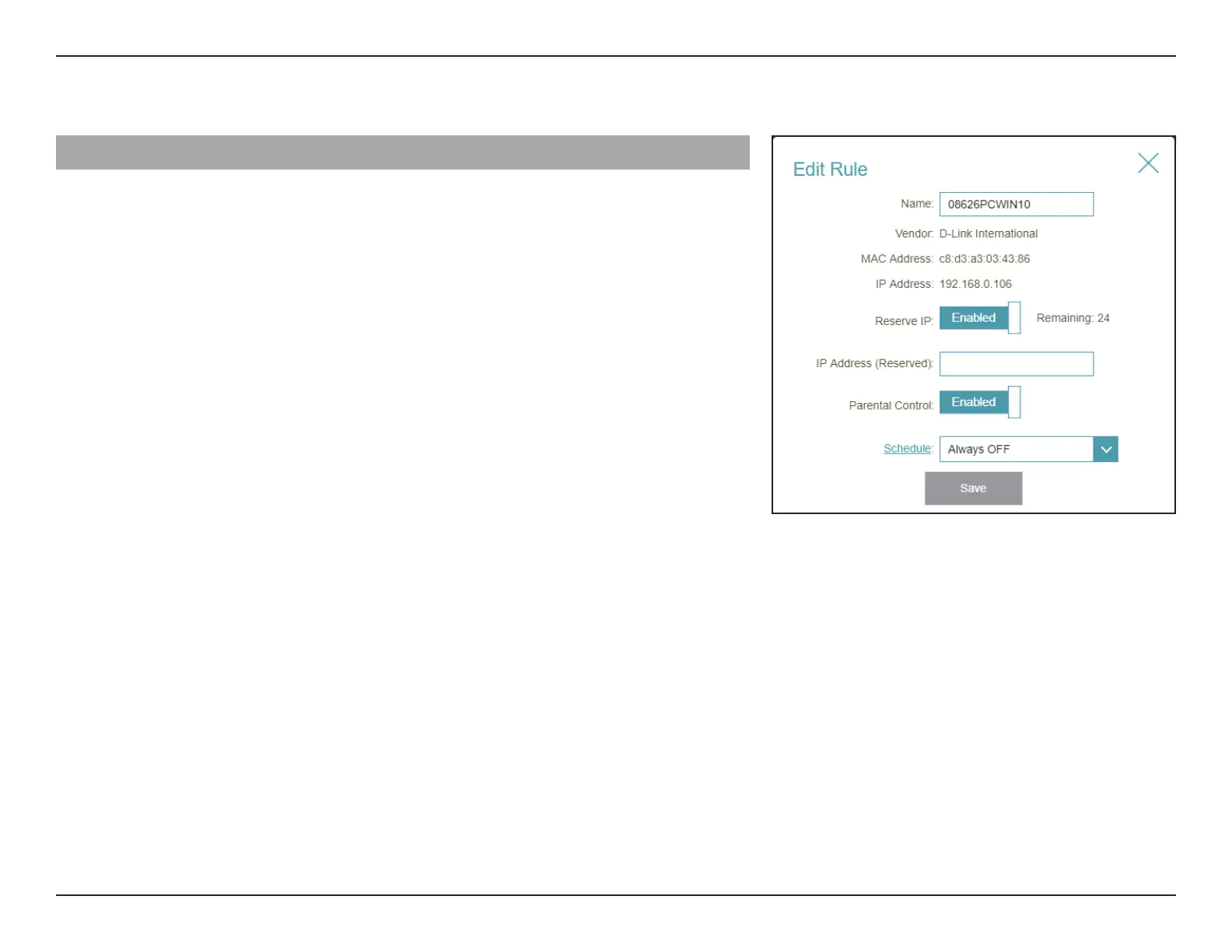 IP Address (Reserved) Specify an IP address for the router's DHCP server to assign.