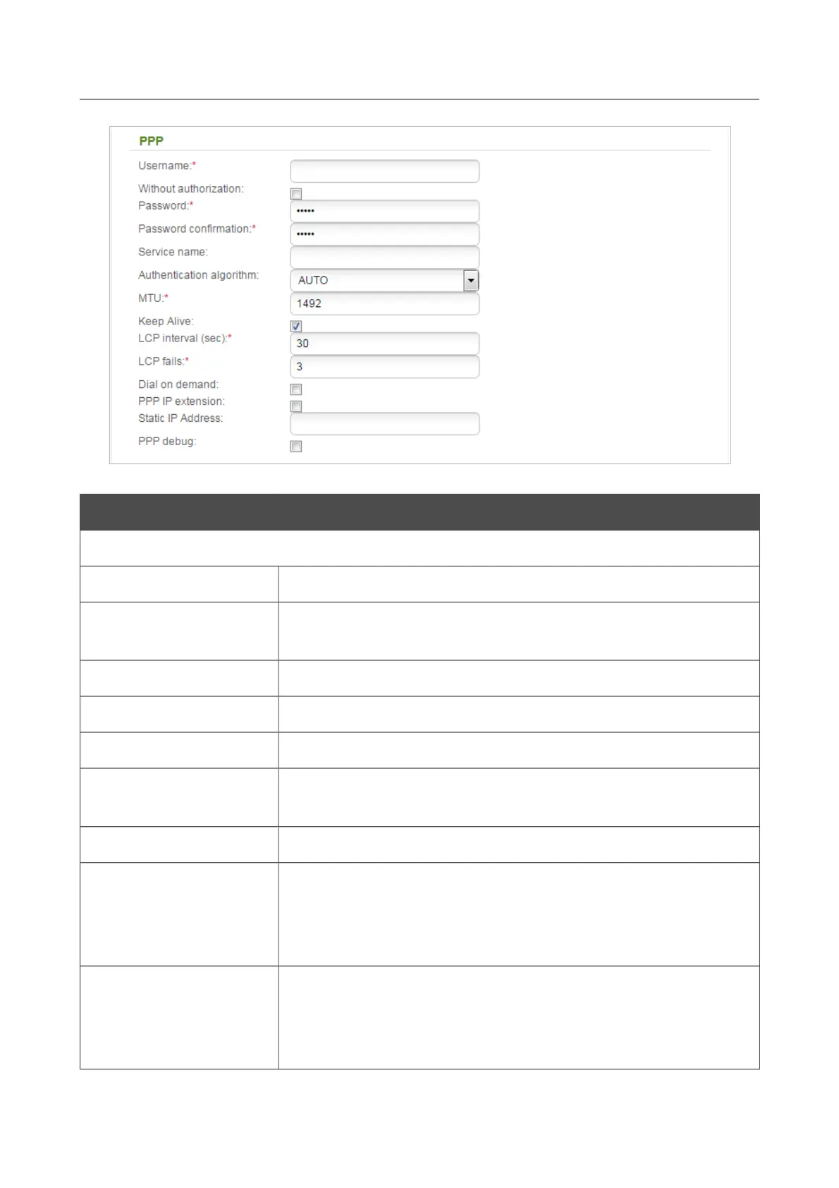Figure 91. The page for creating a new PPPoE + Static IP connection. The PPP section.