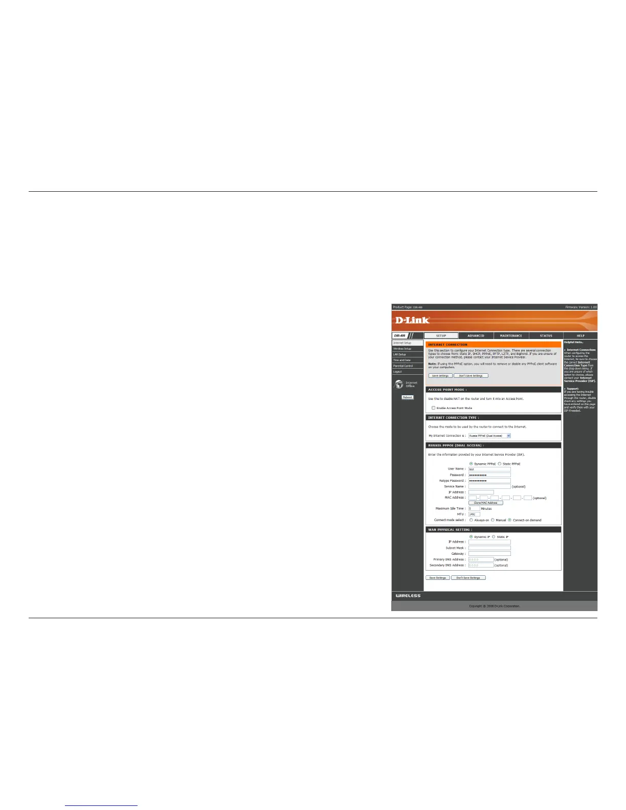 Choose Russia PPPoE (Point to Point Protocol over Ethernet) if your PPPoE Internet connection requires a username