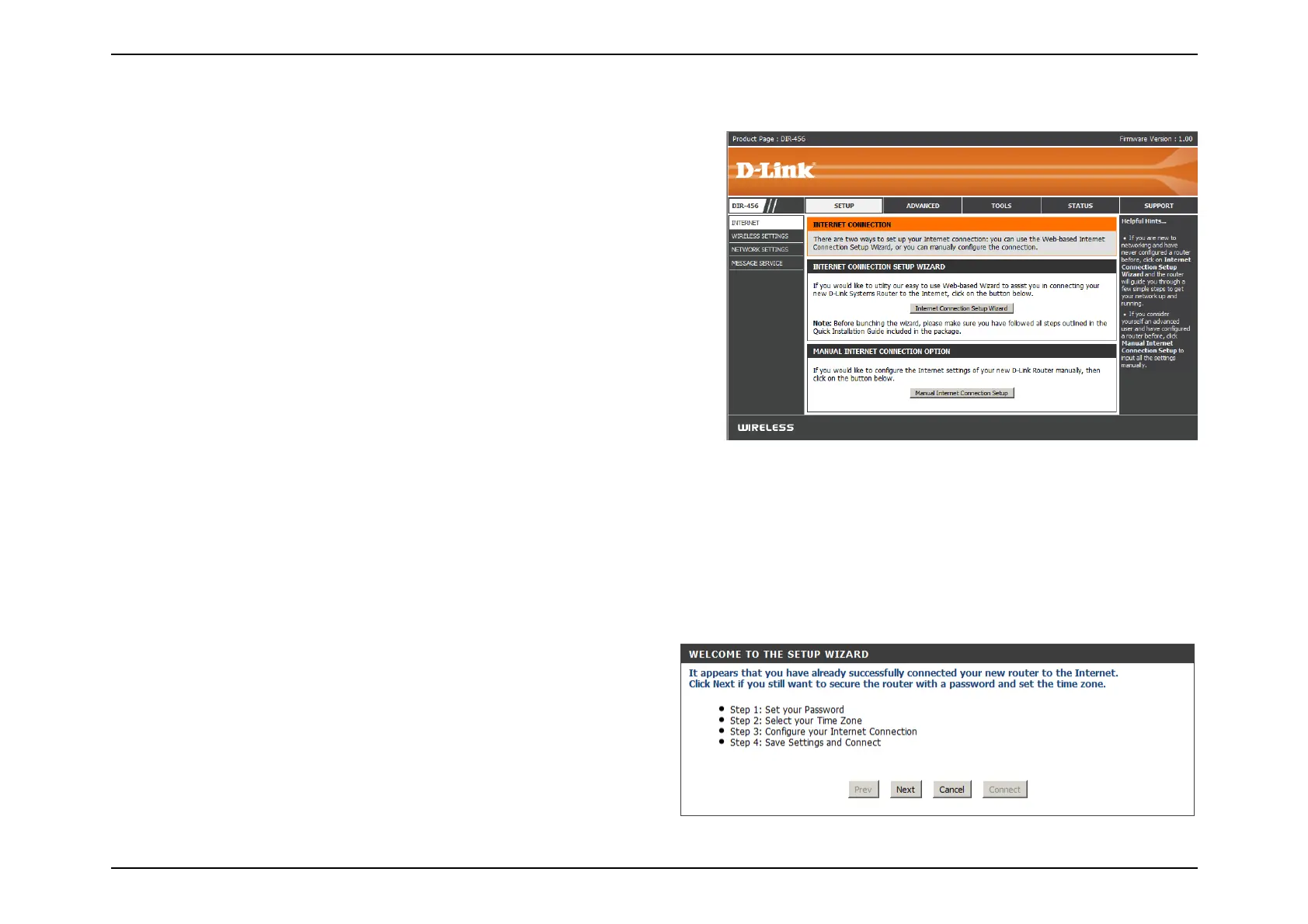 Web-based Internet Connection Setup Wizard or you can manually