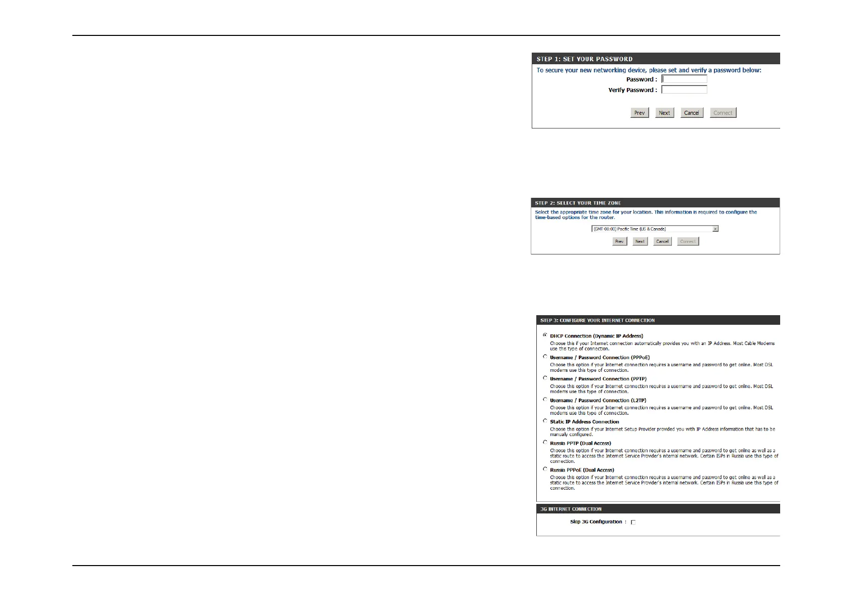 Select the Internet connection type. The connection types are explained on the