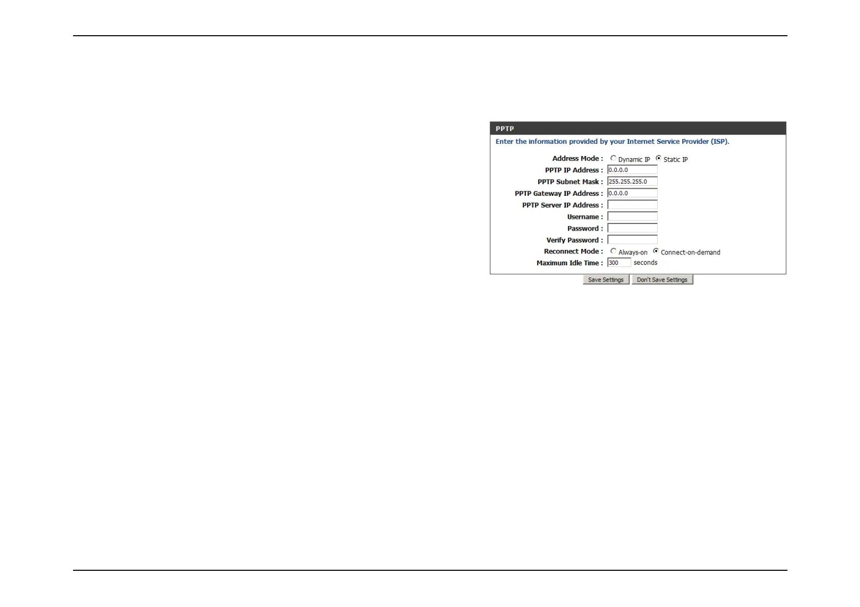 demand, the device will establish PPTP connection when local users want to surf Internet, and disconnect if