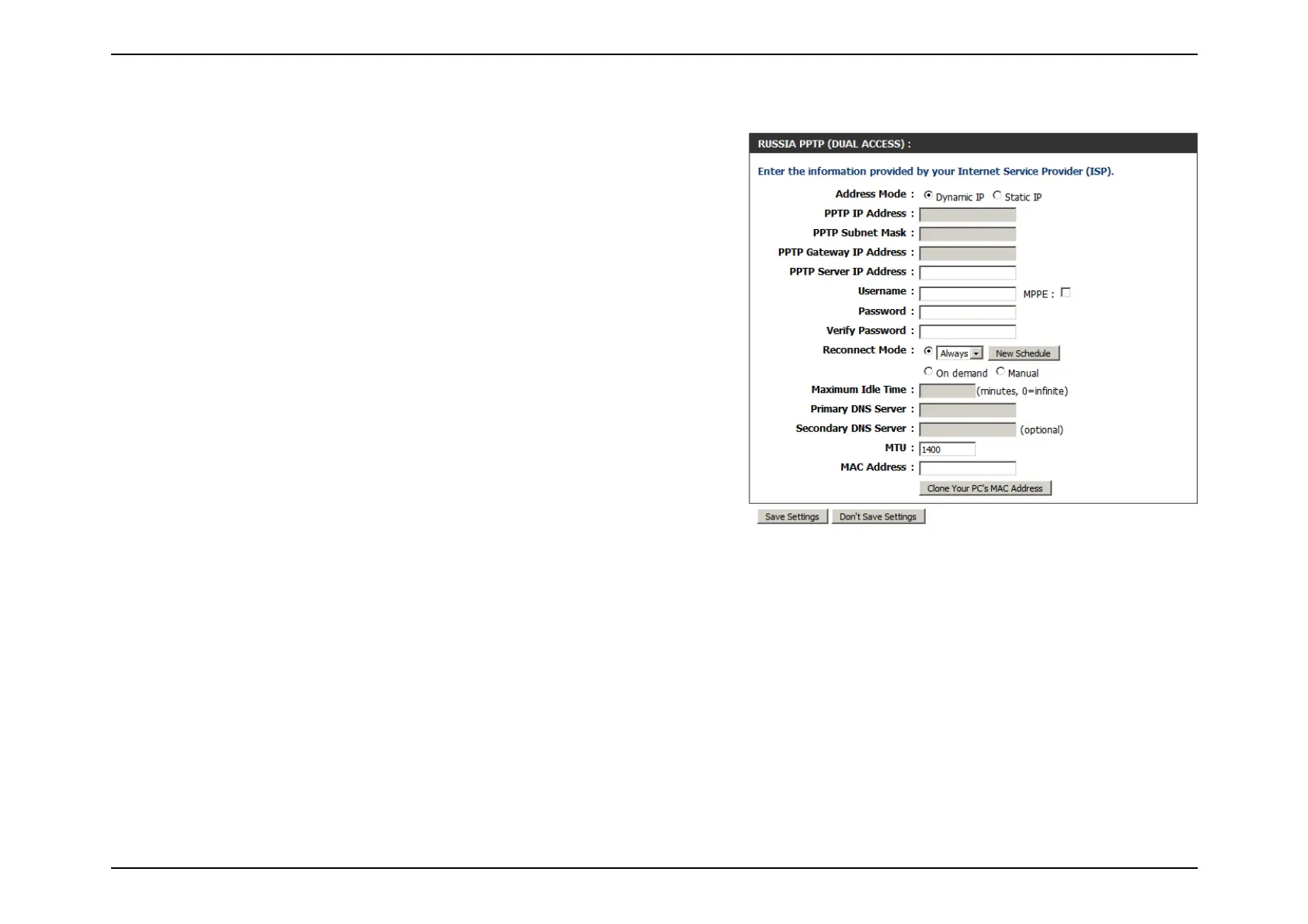 Click Save Settings to save your changes, or click Don’t Save Settings to discard your changes.