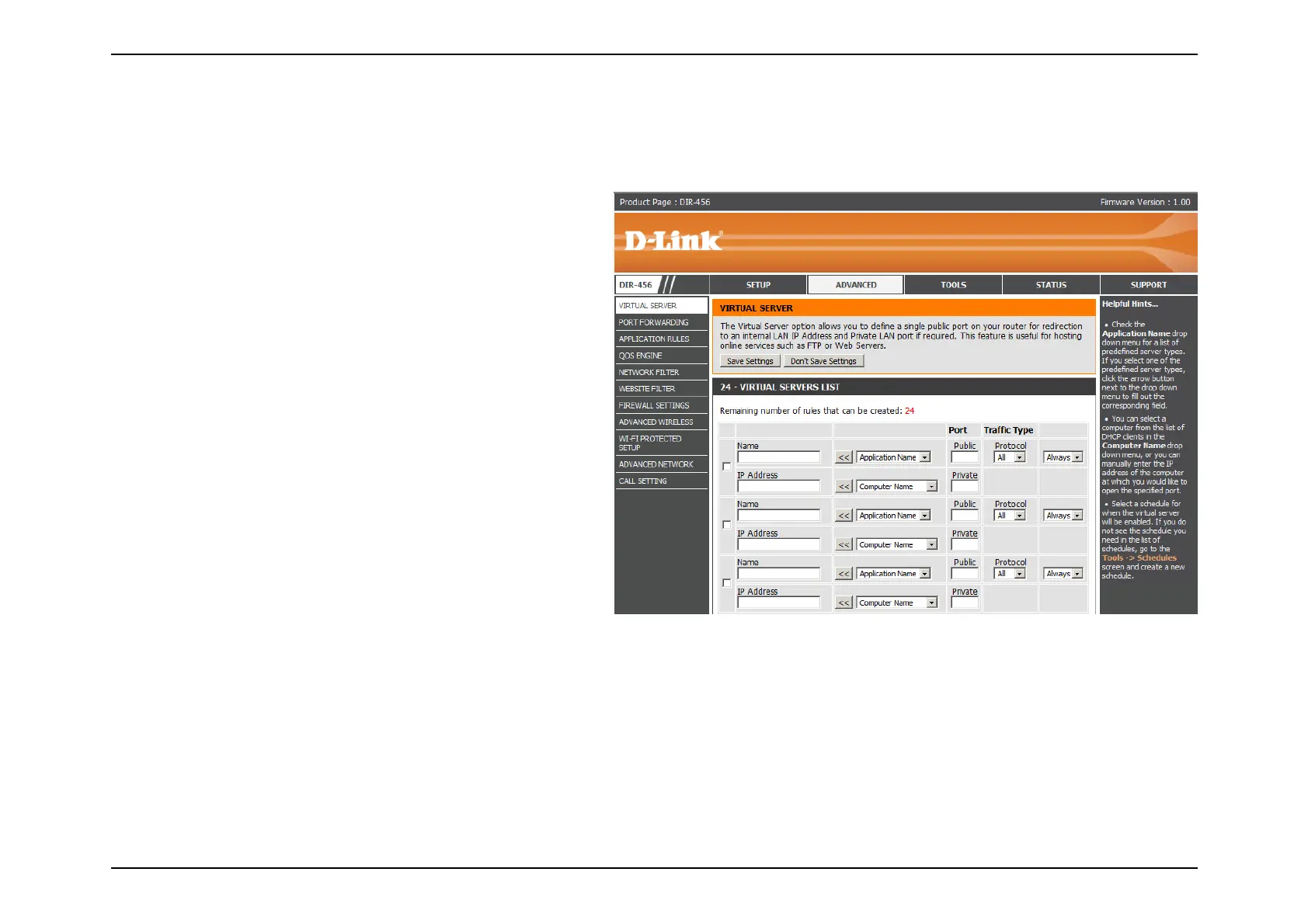 The device can be configured as a virtual server so that users can access services such as Web or FTP via the public (WAN) IP address