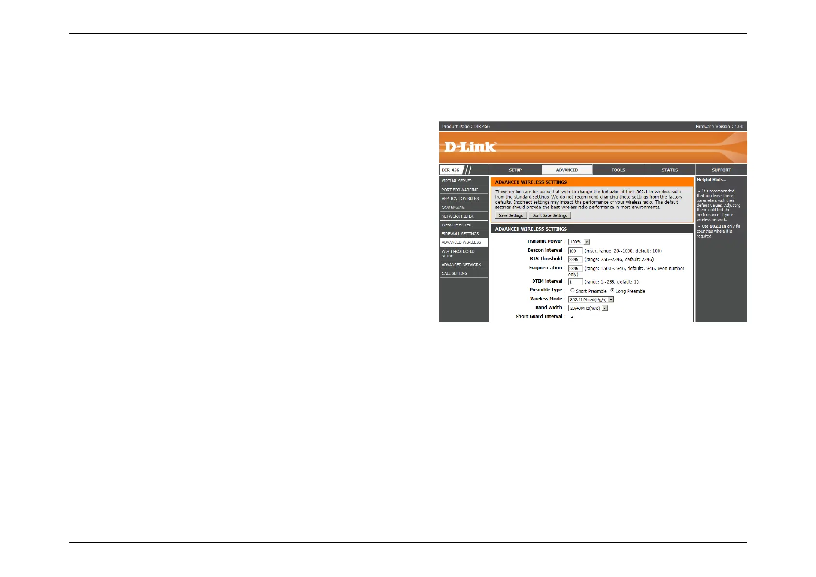 Advanced Wireless contains settings which can negatively affect the performance of your router if configured improperly. Do not change