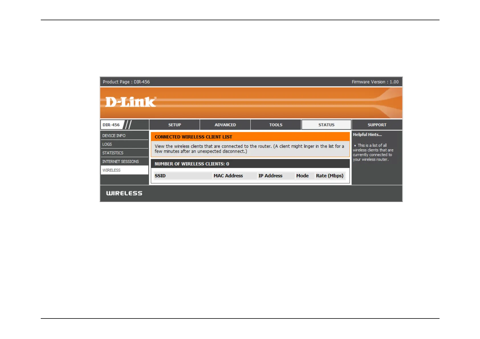 This table displays a list of wireless clients that are connected to your wireless router. It also displays the connection time and MAC